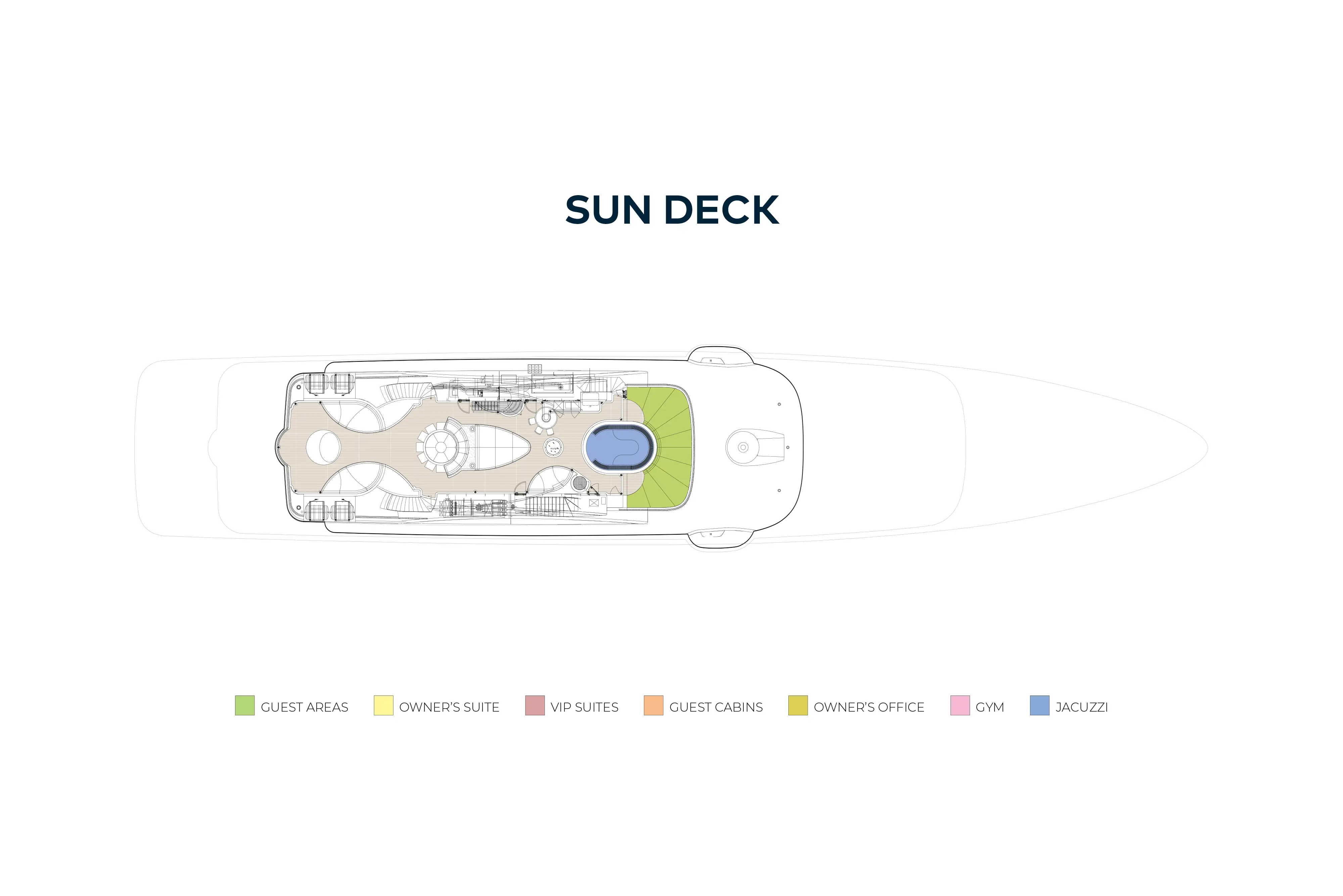 - Oversized glass fronted jacuzzi on the sun deck