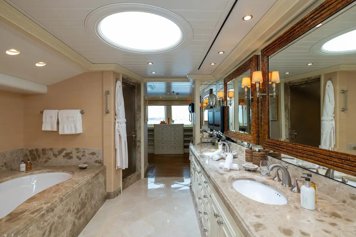 Few charter yachts can rival the master suite of TATOOSH, let alone everything else this wonderful 92.4m (303.1ft) yacht can offer you and your guests. From the moment you embark, TATOOSH’s experienced and attentive crew will be there for you. Once on board, you can make your way to your master suite.