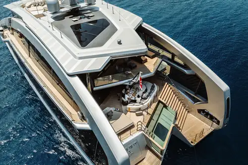 Introducing THIS IS IT, a 43.5m (142.9ft) catamaran that redefines the world of luxury yachting. Built by Tecnomar in 2024, this vessel blends groundbreaking design, exceptional performance, and unparalleled comfort. With her sleek, asymmetrical lines and over 600 sqm of glass, THIS IS IT seamlessly connects you to the sea, making every moment aboard extraordinary. She is a true masterpiece, a yacht where elegance and innovation meet to create an unmatched charter experience.