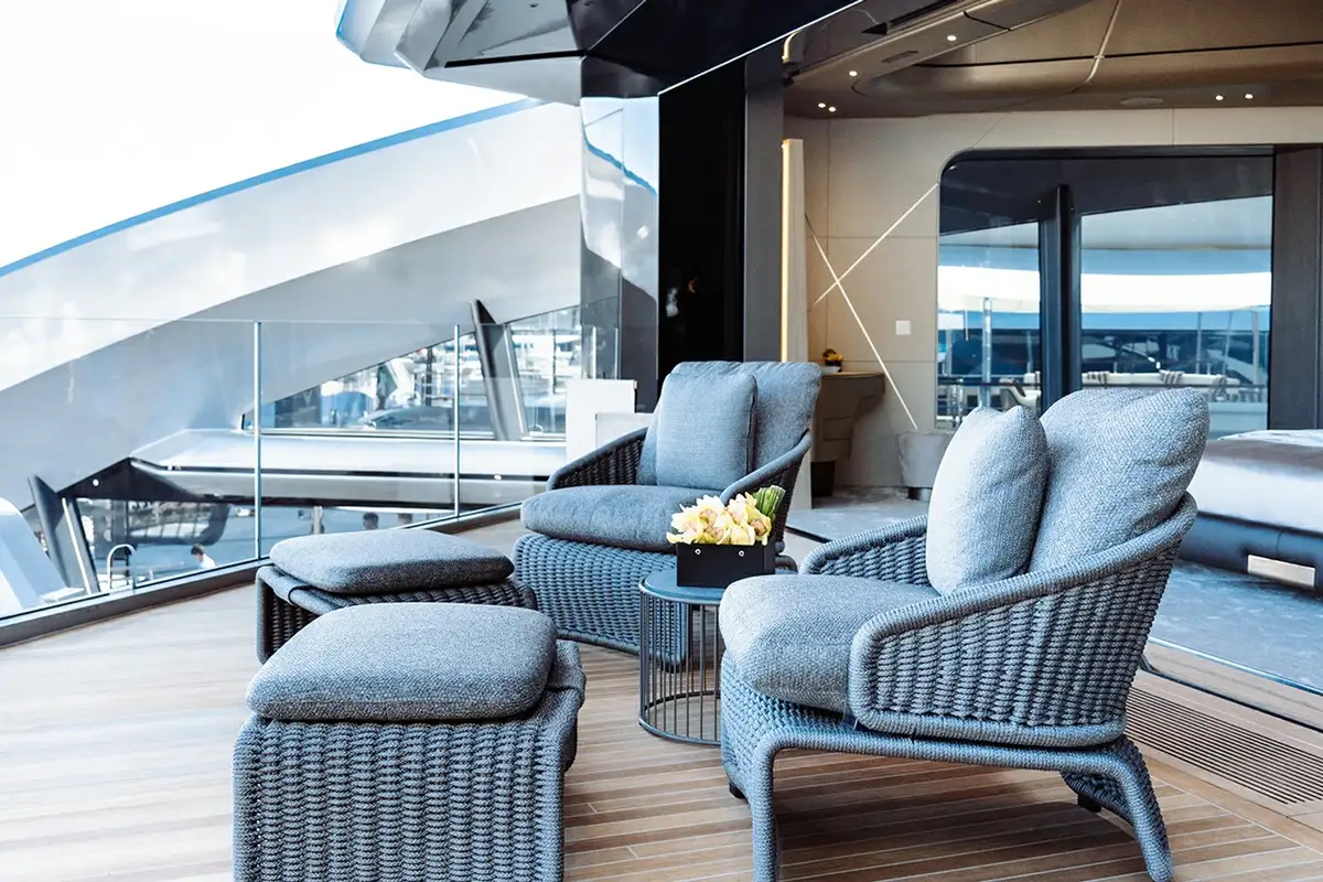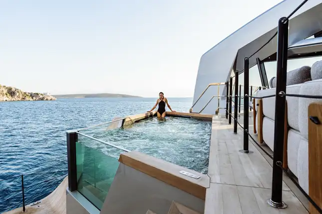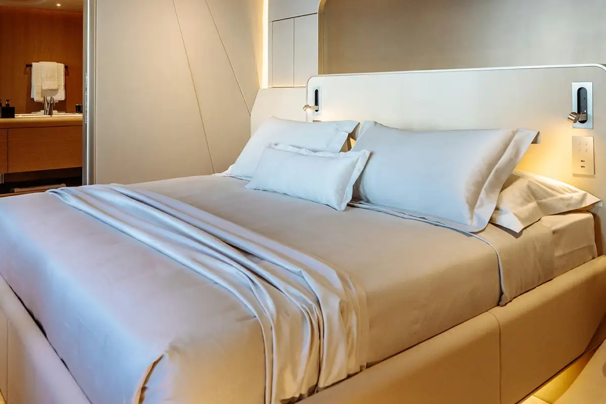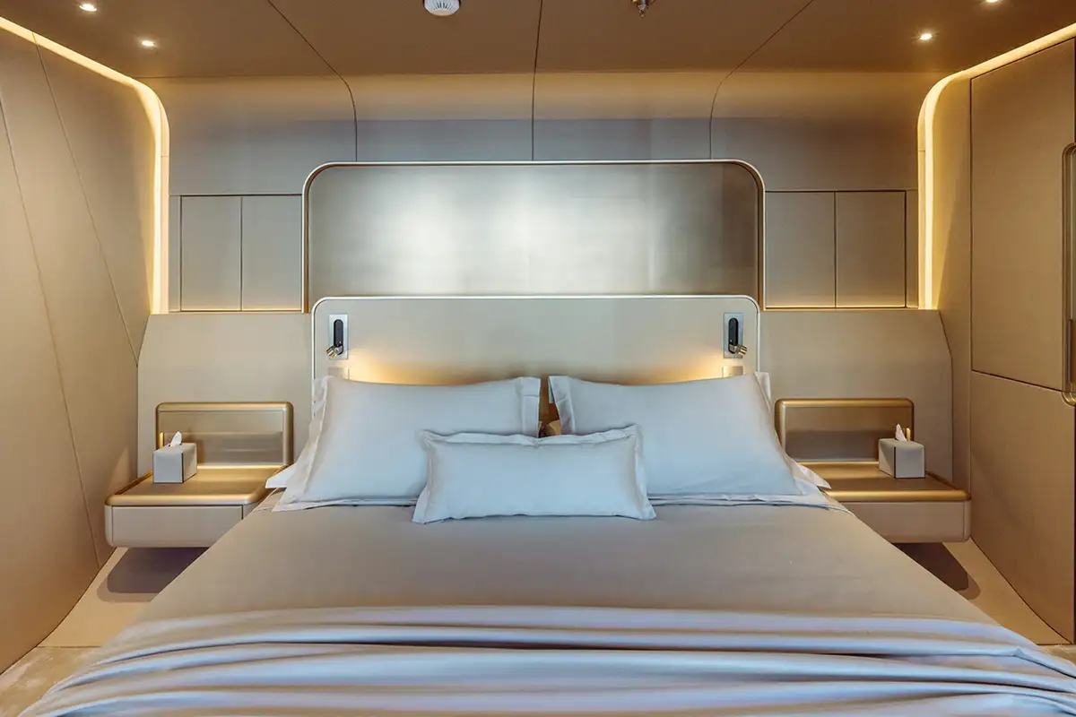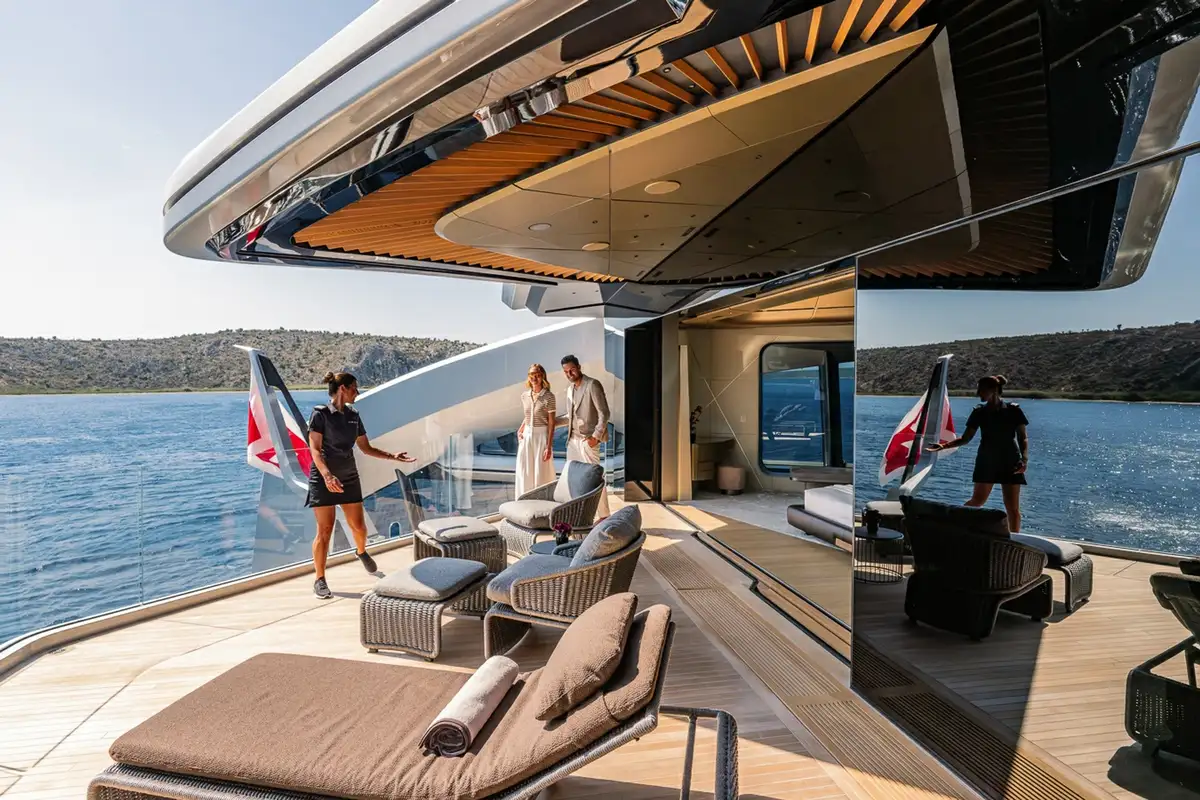 Accommodating up to 12 guests in five cabins, THIS IS IT ensures ultimate privacy and comfort. The master suite has panoramic views and a private terrace, while the guest cabins have all modern amenities. The yacht has state-of-the-art technology, including a fully integrated sound system and advanced entertainment options.
