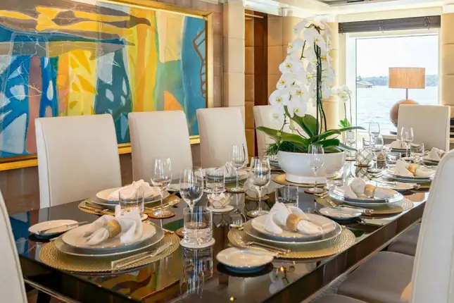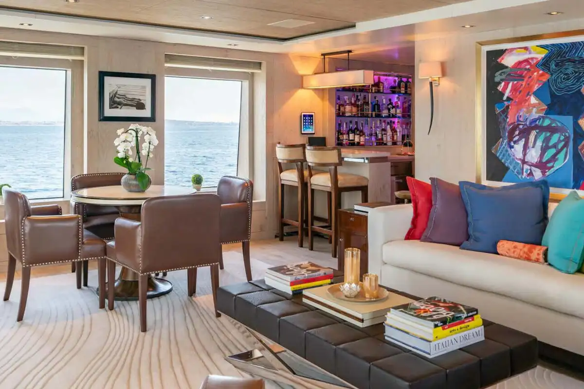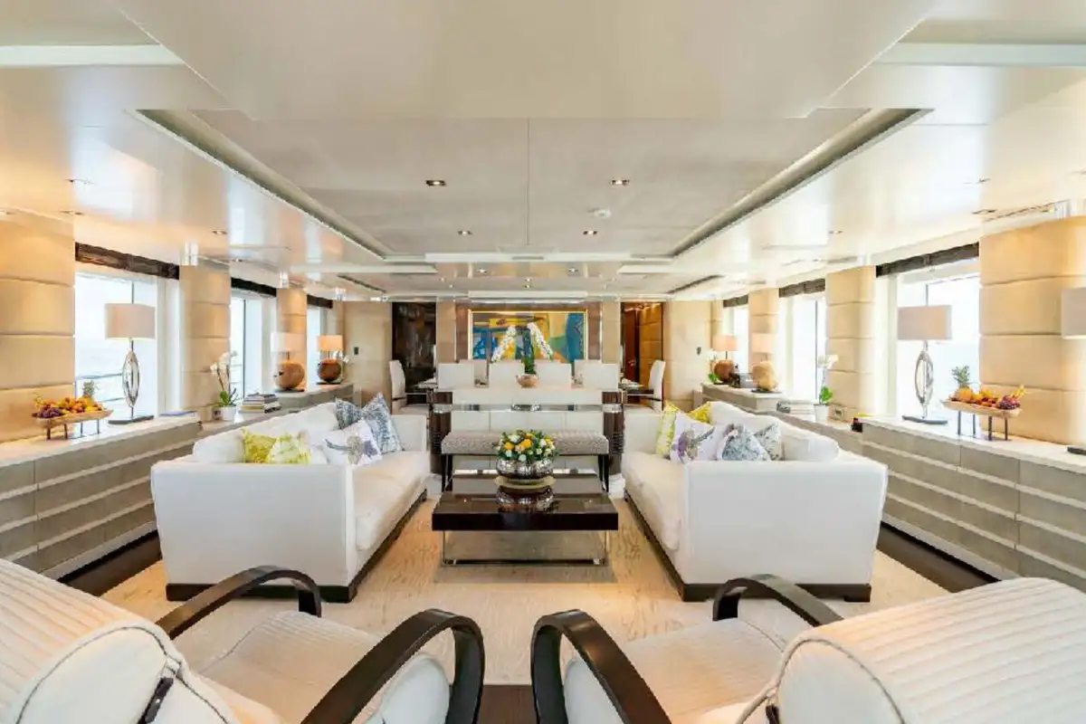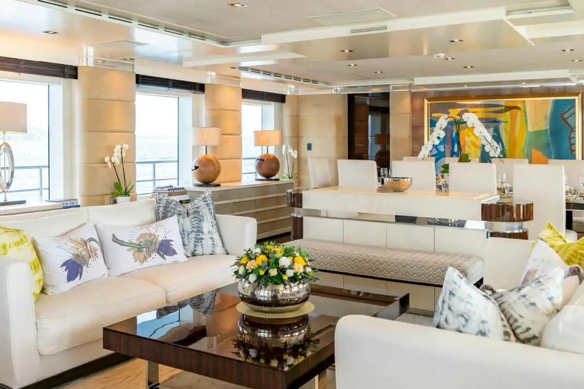 The on board décor is elegantly modern and the main saloon features floor-to-ceiling windows, which create a light and airy atmosphere. A highlight of TIMBUKTU's interior arrangement is her sky lounge on the upper deck, where guests can relax enjoying fantastic panoramic views.