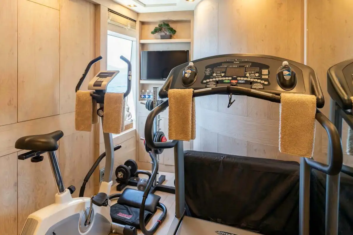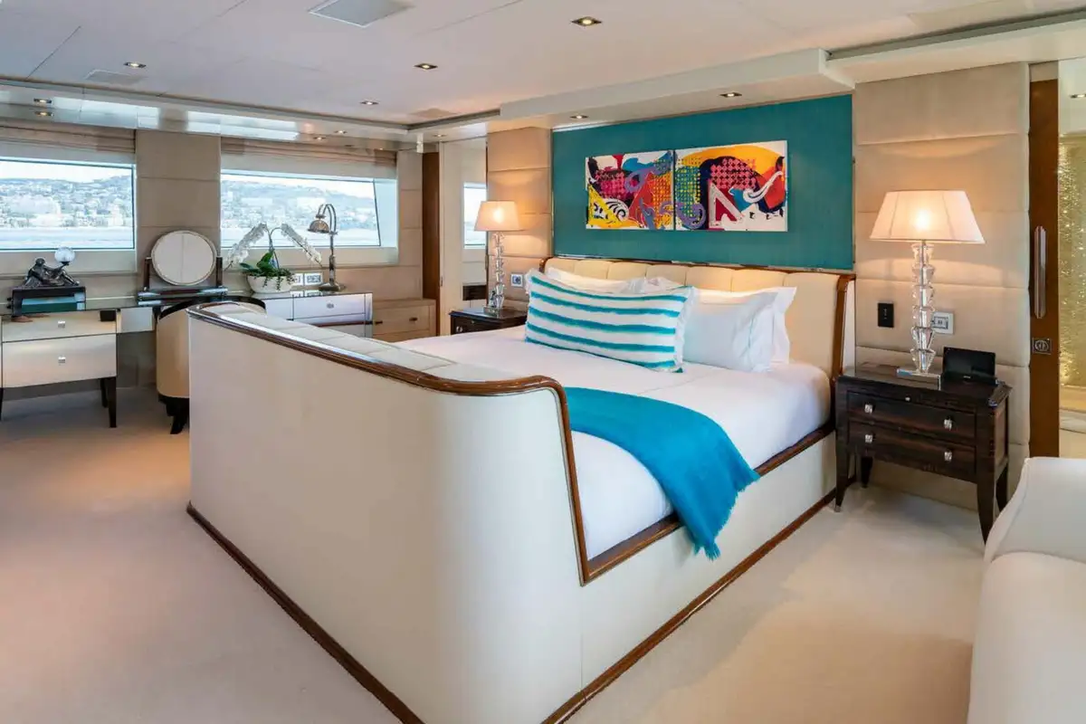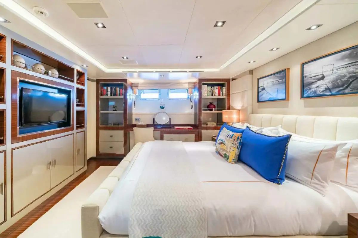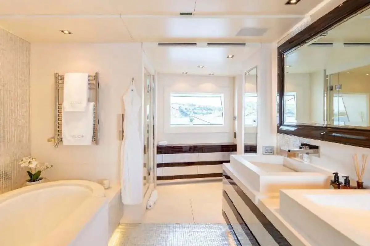 She also boasts an impressive selection of watertoys and tenders, making sure that watersports and excursions are at the top of your daily itinerary. A towed 10.5m Scorpion 1080 Open RIB tender will comfortably ferry 11 guests in and out of the nearest port, whereas SeaDoos, SeaBobs, kayaks, and SUPs await if you want to explore the ocean floor or surrounding islands in style. eBikes are also at your disposal if you want to get a proper tour of the terrain you're anchored nearby.