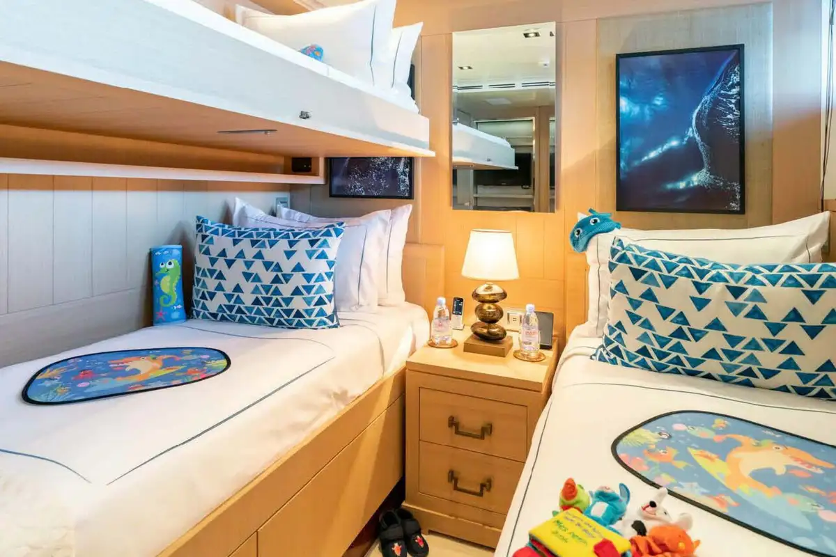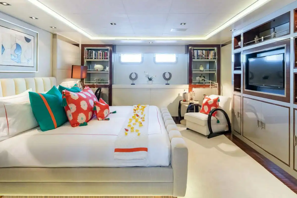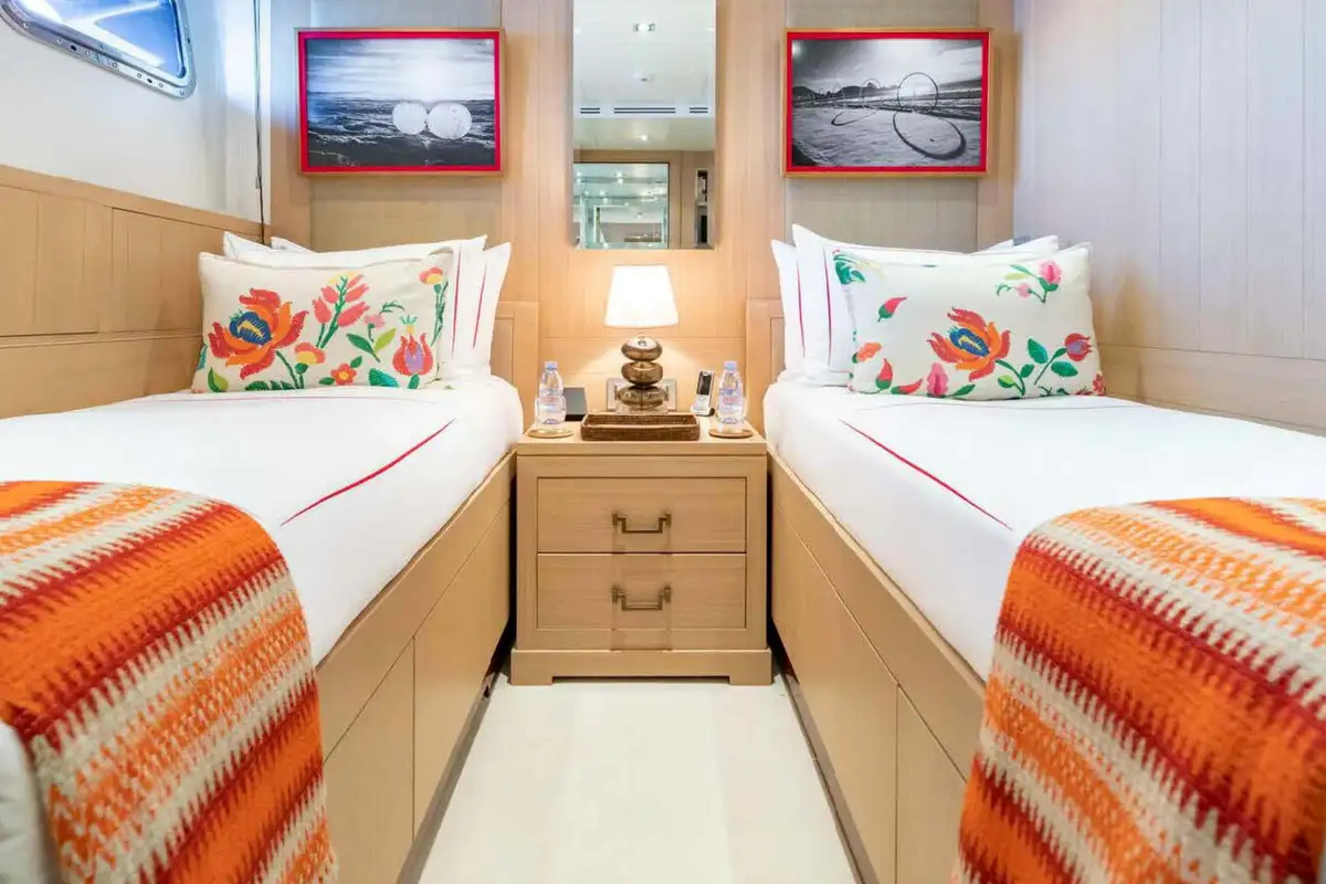 TIMBUKTU's accommodation for up to 12 guests, comprises a full-beam master suite, two VIP double suites, two en suite twin cabins and a third, smaller cabin which can be made suitable for guest use.