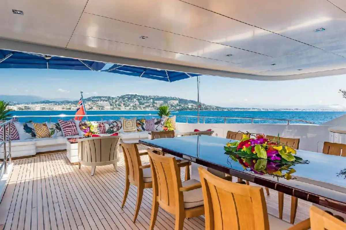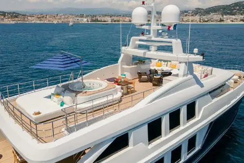 TIMBUKTU, Baglietto 42m delivered in 2009 and since refitted in 2021, is an innovative Francesco Paszkowski design that optimises exterior deck space and, due to the clever layout, results in tremendous volume for a yacht of her size. With her experienced crew on board, generous interior spaces, and slick exterior, she is an excellent choice to charter. TIMBUKTU's true semi displacement hull shape and her high performance twin 2700hp MTU diesel engines give her a versatile range of speeds. She cruises comfortably at 13 knots with an efficient range of 2000 nautical miles and has the capability to reach top speeds of 18/19 knots, ensuring you can reach your next destination at pace and in comfort. TIMBUKTU's accommodation for up to 12 guests, comprises a full-beam master suite, two VIP double suites, two en suite twin cabins and a third, smaller cabin which can be made suitable for guest use. The on board décor is elegantly modern and the main saloon features floor-to-ceiling windows, which create a light and airy atmosphere. A highlight of TIMBUKTU's interior arrangement is her sky lounge on the upper deck, where guests can relax enjoying fantastic panoramic views. TIMBUKTU boasts an expansive sun deck that accommodates a full bar, upholstered seats and plenty of sun pads that surround a jacuzzi, which is located on aft and enjoys exceptional, uninterrupted views. She also boasts an impressive selection of watertoys and tenders, making sure that watersports and excursions are at the top of your daily itinerary. A towed 10.5m Scorpion 1080 Open RIB tender will comfortably ferry 11 guests in and out of the nearest port, whereas SeaDoos, SeaBobs, kayaks, and SUPs await if you want to explore the ocean floor or surrounding islands in style. eBikes are also at your disposal if you want to get a proper tour of the terrain you're anchored nearby.