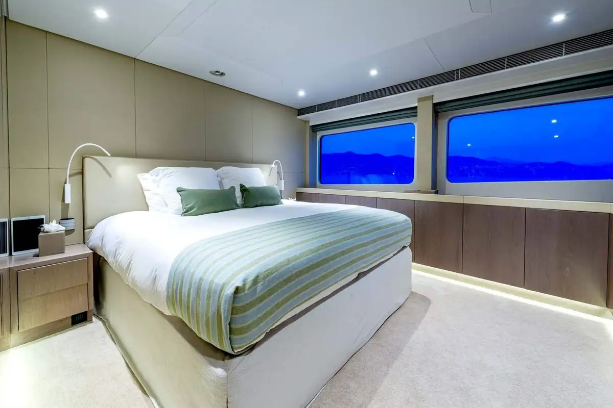 - Full-beam main deck master cabin with walk in wardrobe and en suite
