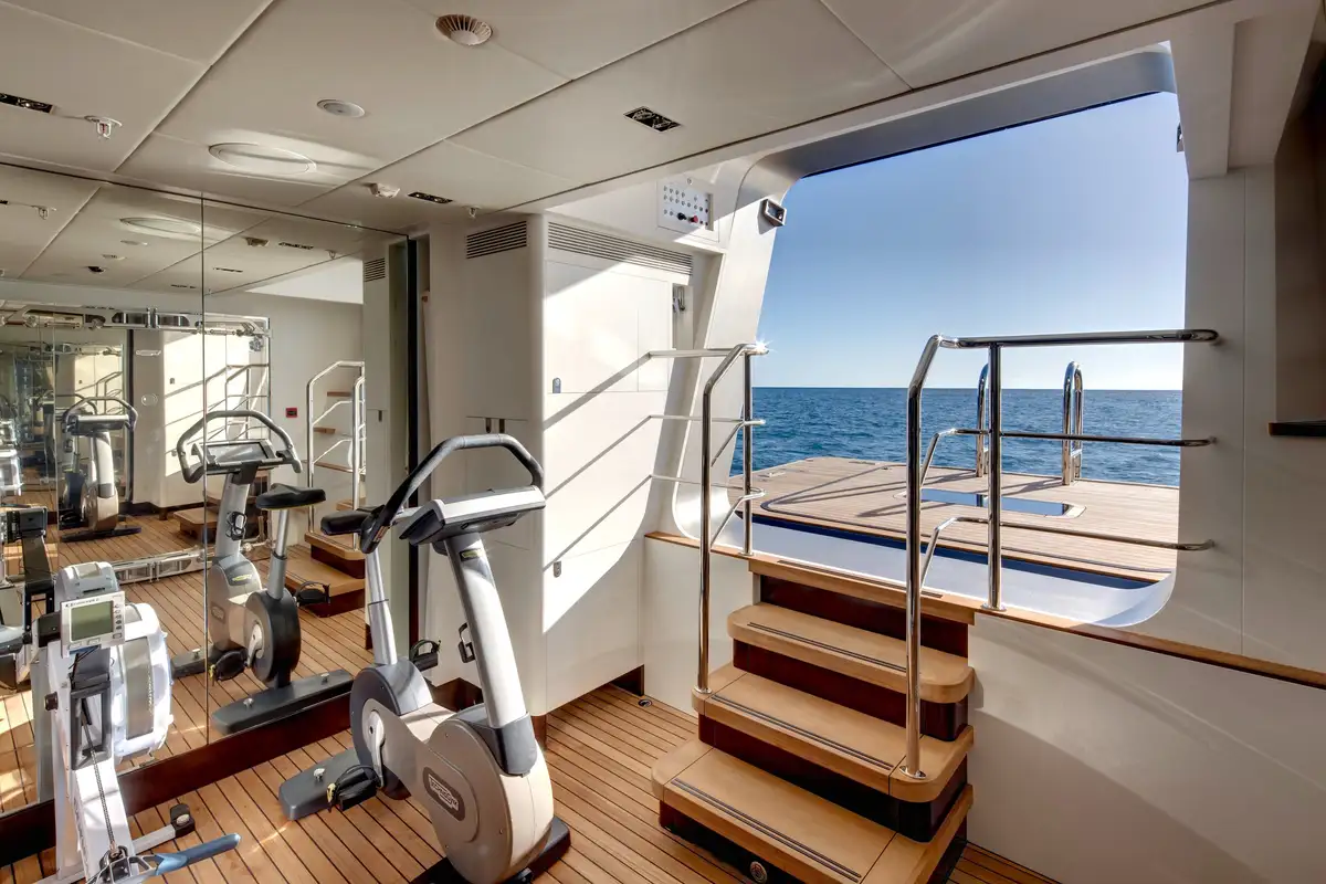 At 67.2m, she is both lightning fast, with speeds up to 20 knots well within her compass, and feature packed. Her 8m limo tender launches from a stern door that folds down to become a large swim platform, she has a fully equipped gym and a packed toy garage, both with fold down sea terraces, a main deck aft jacuzzi covered by sliding sunpads and a full beam master cabin with lounge area and office.