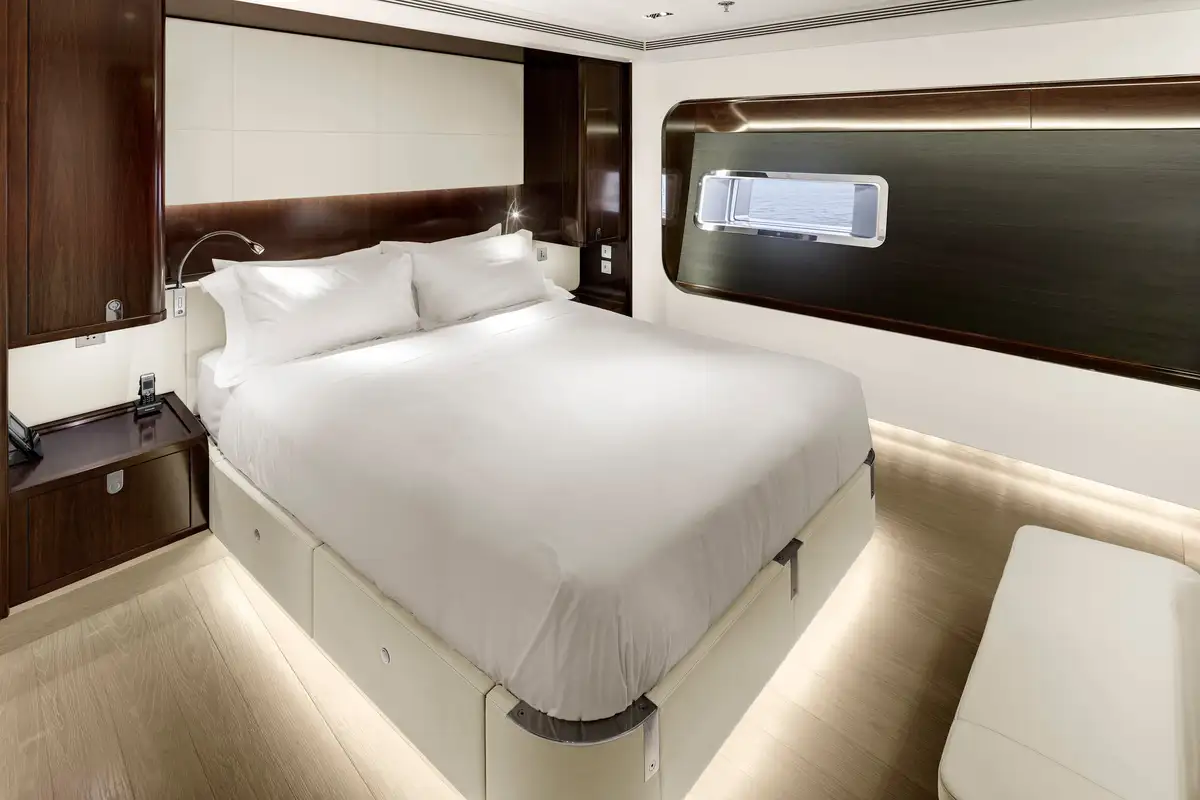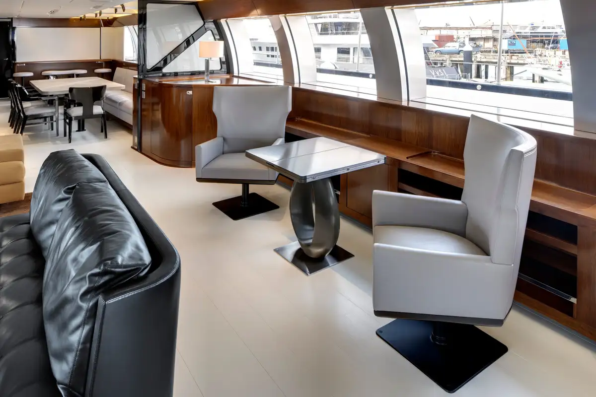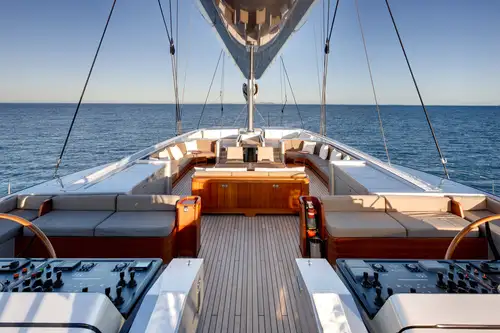 Inside you really are in the presence of greatness. Liaigre's interiors are jaw dropping and deservedly award winning. There's a large saloon area that also serves as a home theatre, a dining area with sit up bar, office area and two more intimate spaces. She welcomes 12 guests in five sumptuous cabins and each of them is in for an unforgettable experience.