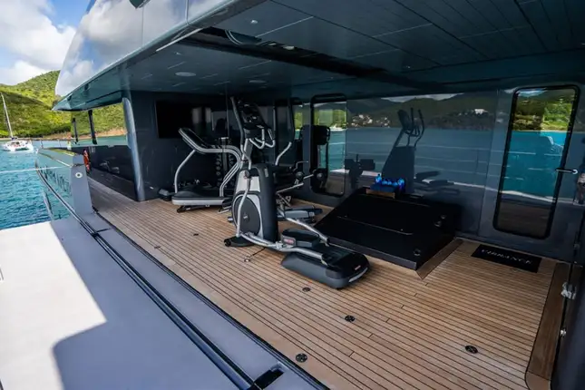 - Dedicated al fresco gym on the side deck with fold down balcony
