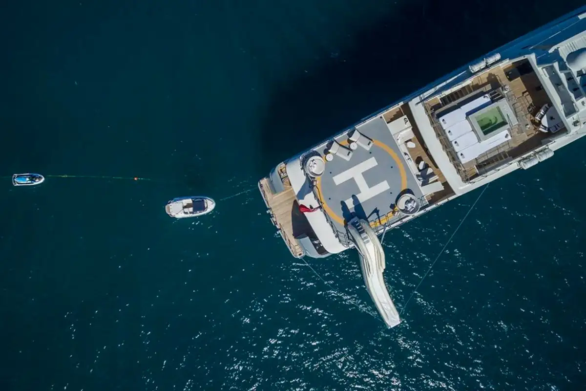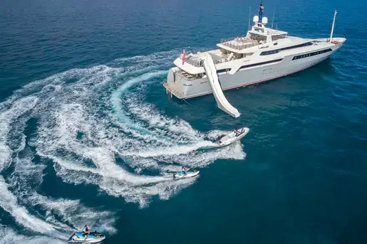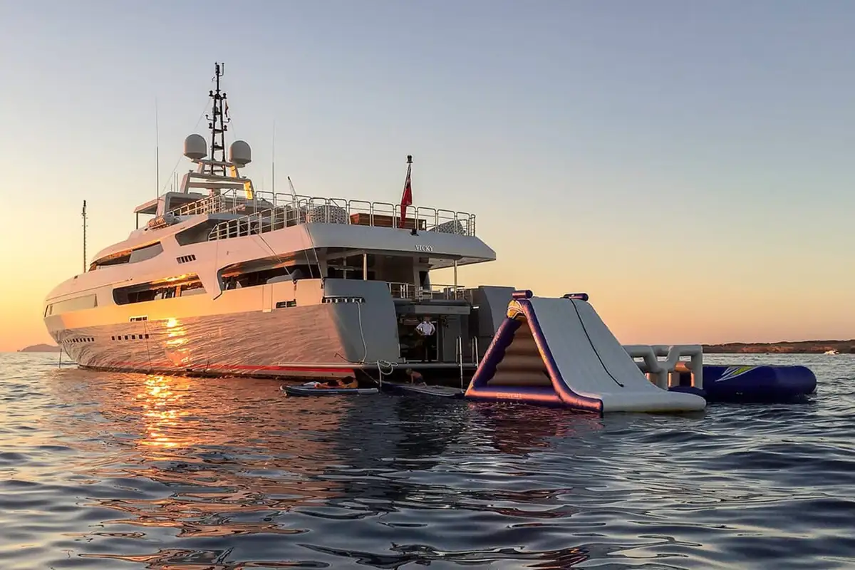 VICKY epitomises Italian style and design. When you fly in on your helicopter, you land on the top deck of the largest and highest standard vessel ever built by Baglietto yachts. From the sumptuous cabins to the hamman steam room to the jacuzzi swimming pool, no detail has been missed to make this your charter of the lifetime.