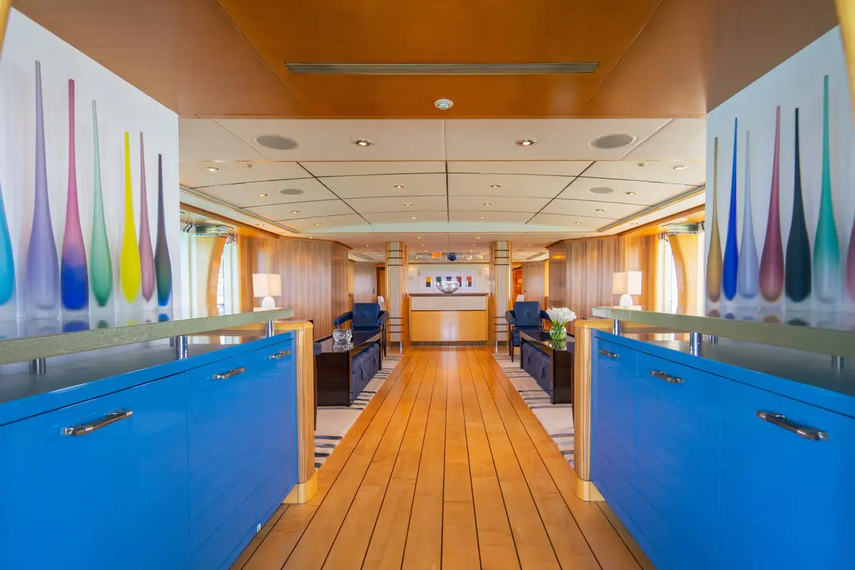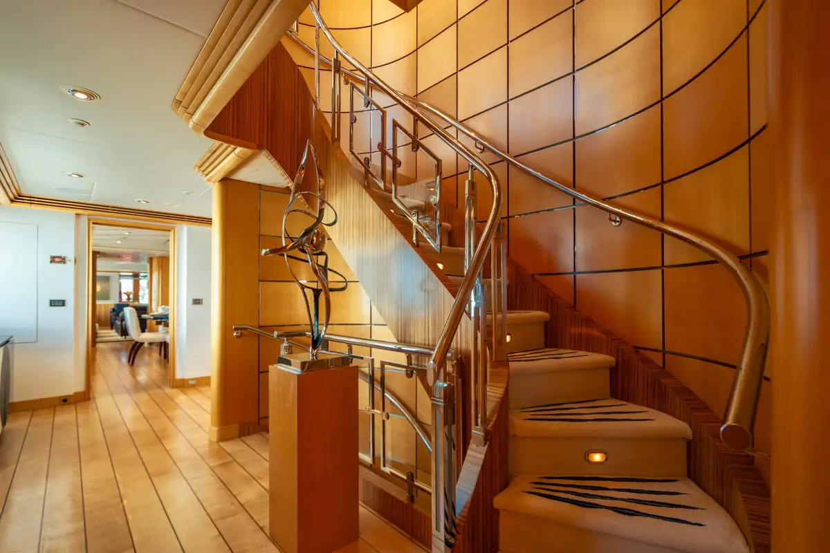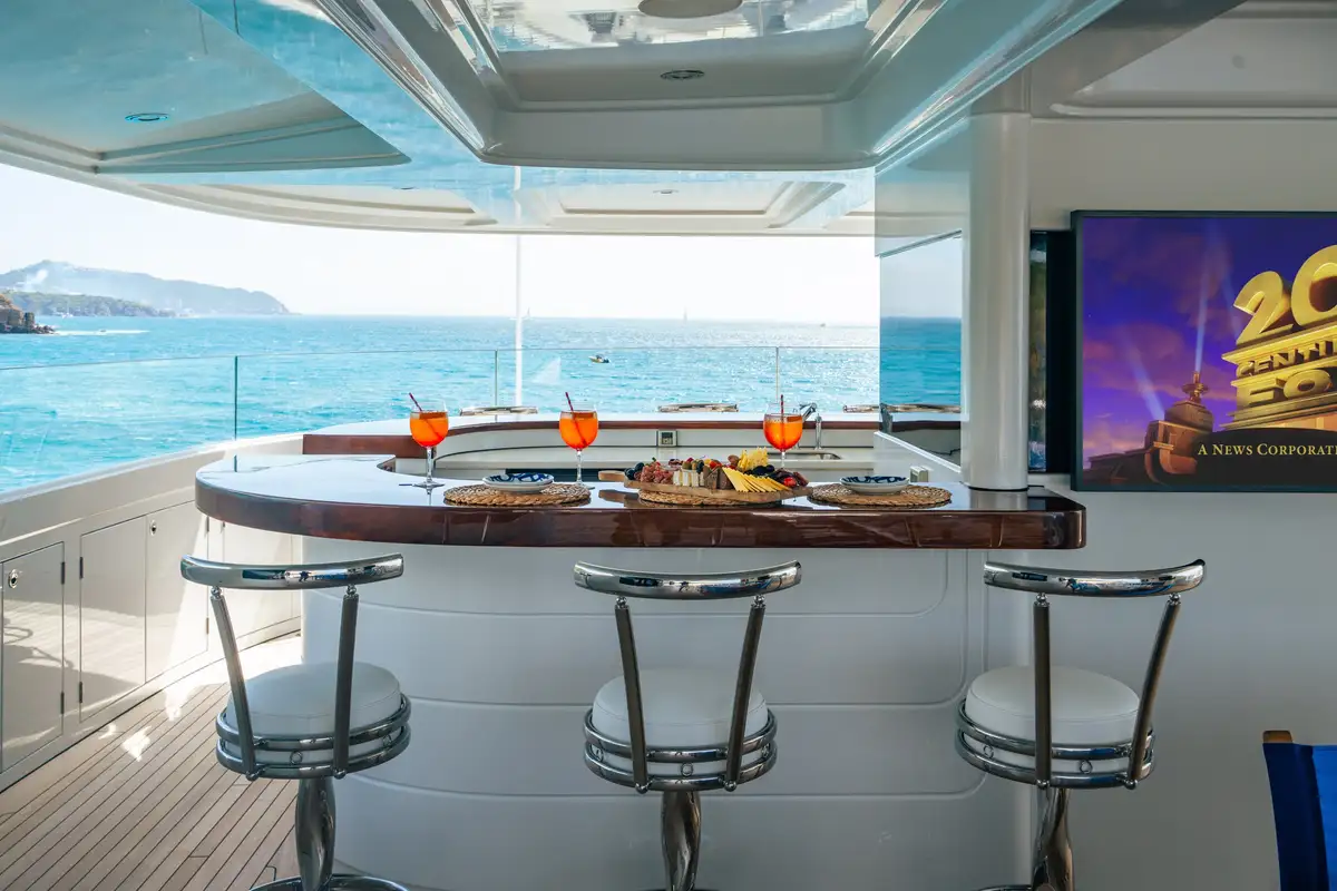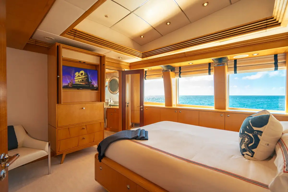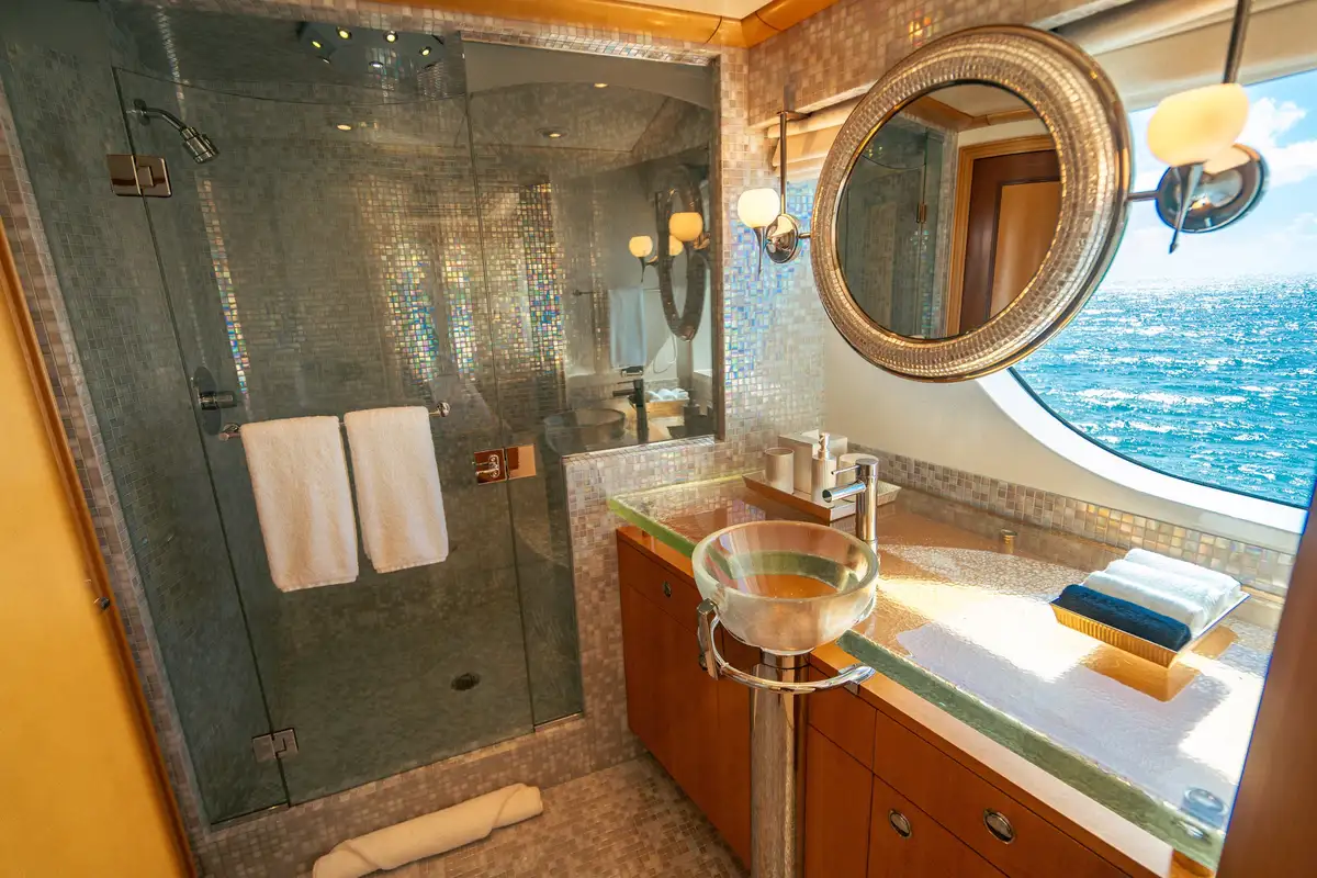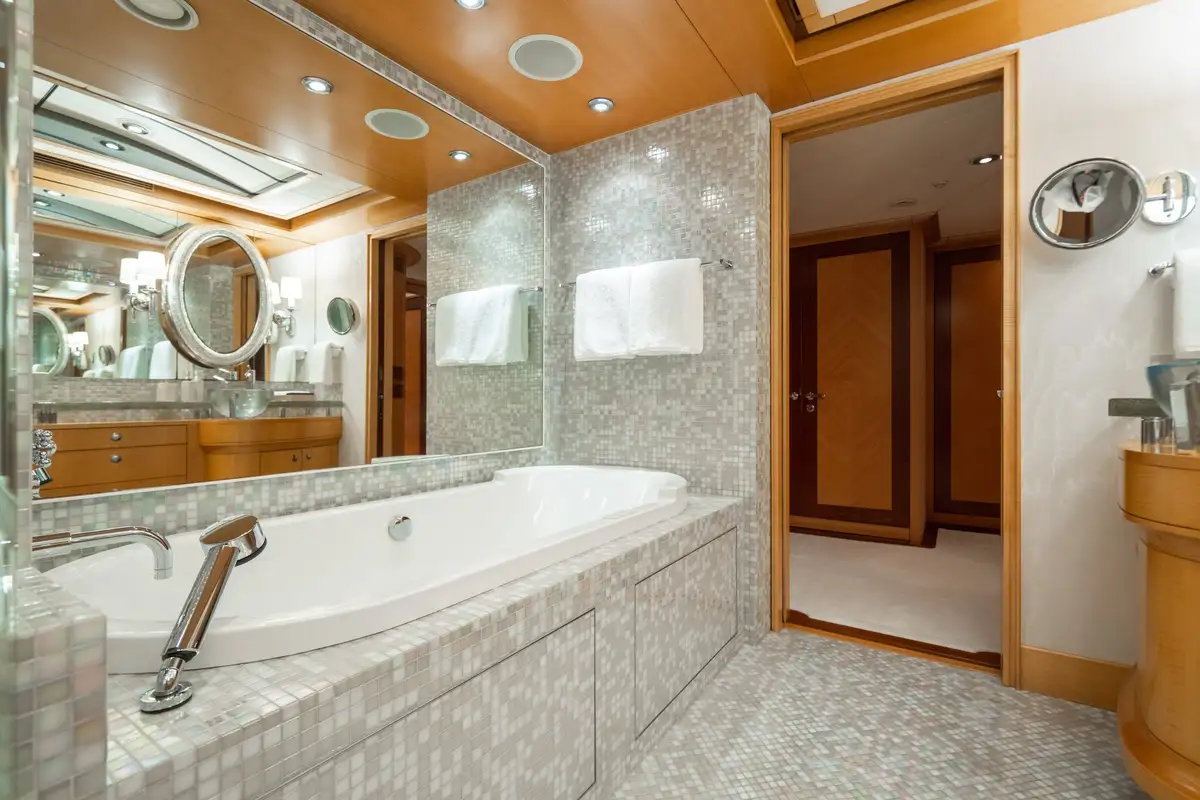 Relaxed and ready for a peaceful night’s sleep, retreat to one of the seven luxurious cabins. Located on the bridge deck, the master suite includes a semi-private, full beam aft deck space with removable windows. A further two VIP cabins can be found on the main deck and benefit from large picture windows, while the lower deck has two doubles and two twins. All of the guest decks are connected by an elevator, adding to VICTORIA DEL MAR’s ample comforts.