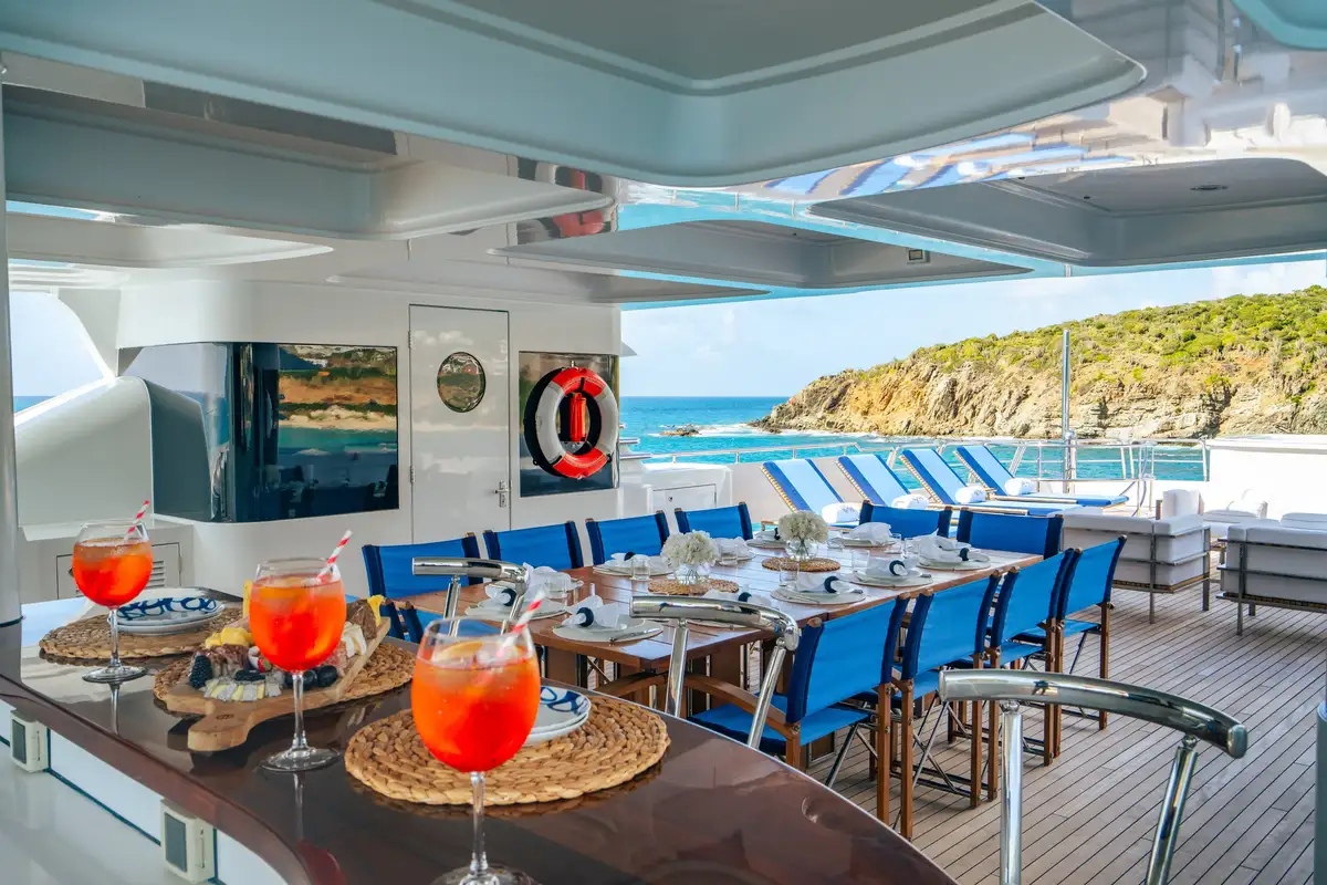 With her solid American pedigree, VICTORIA DEL MAR is an elegant charter choice for exploring the waters of the Caribbean and Mediterranean. Delivered by the US shipyard Delta Marine in 2006, she underwent an extensive refit in 2018, followed by an interior refit in 2025, and is today the epitome of style and sophistication with a fresh and contemporary décor.