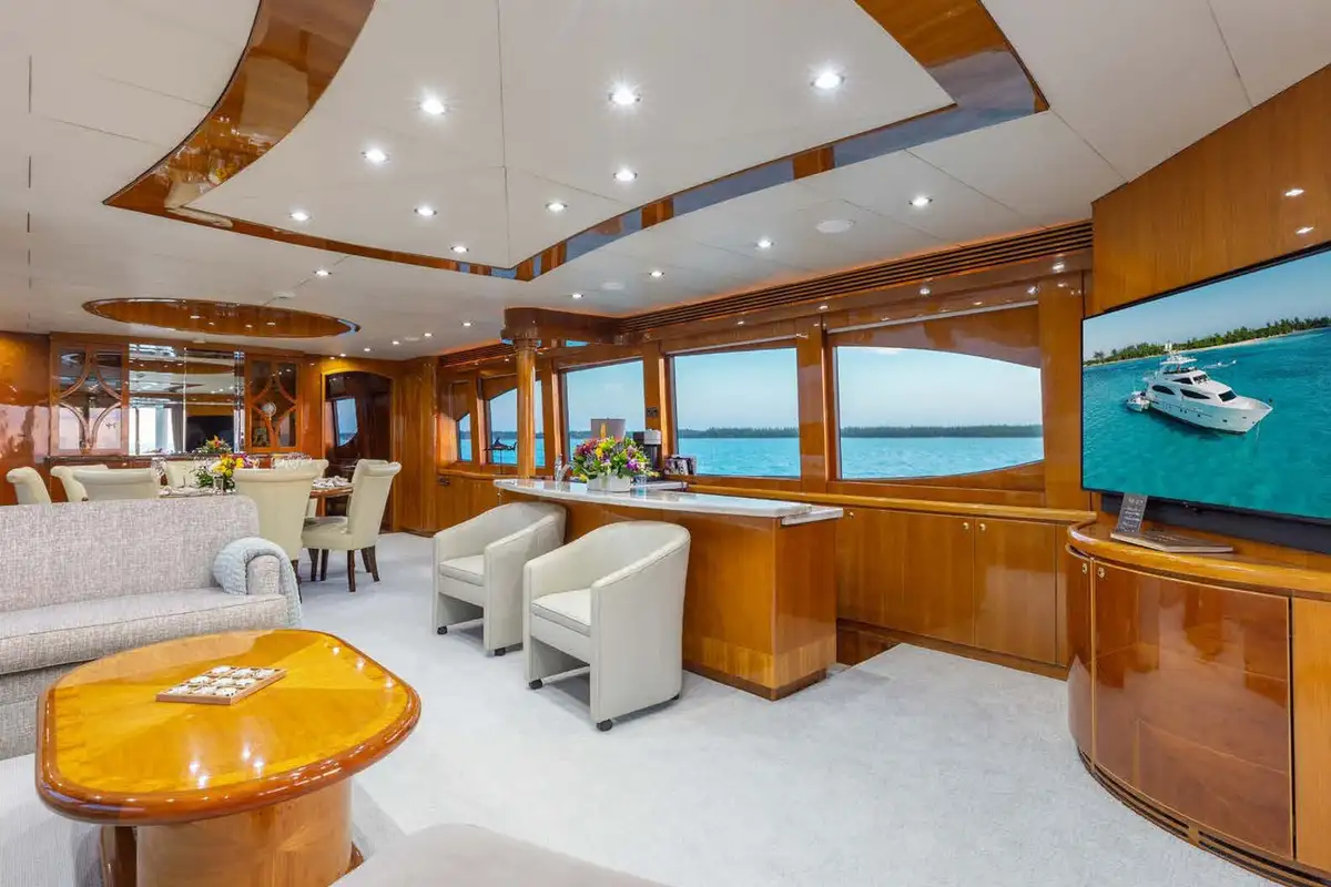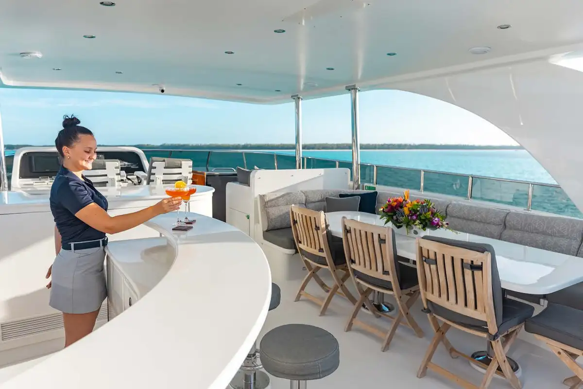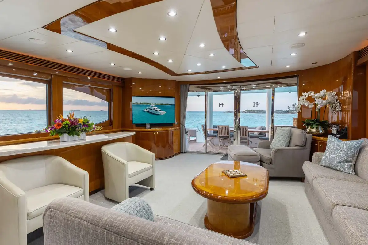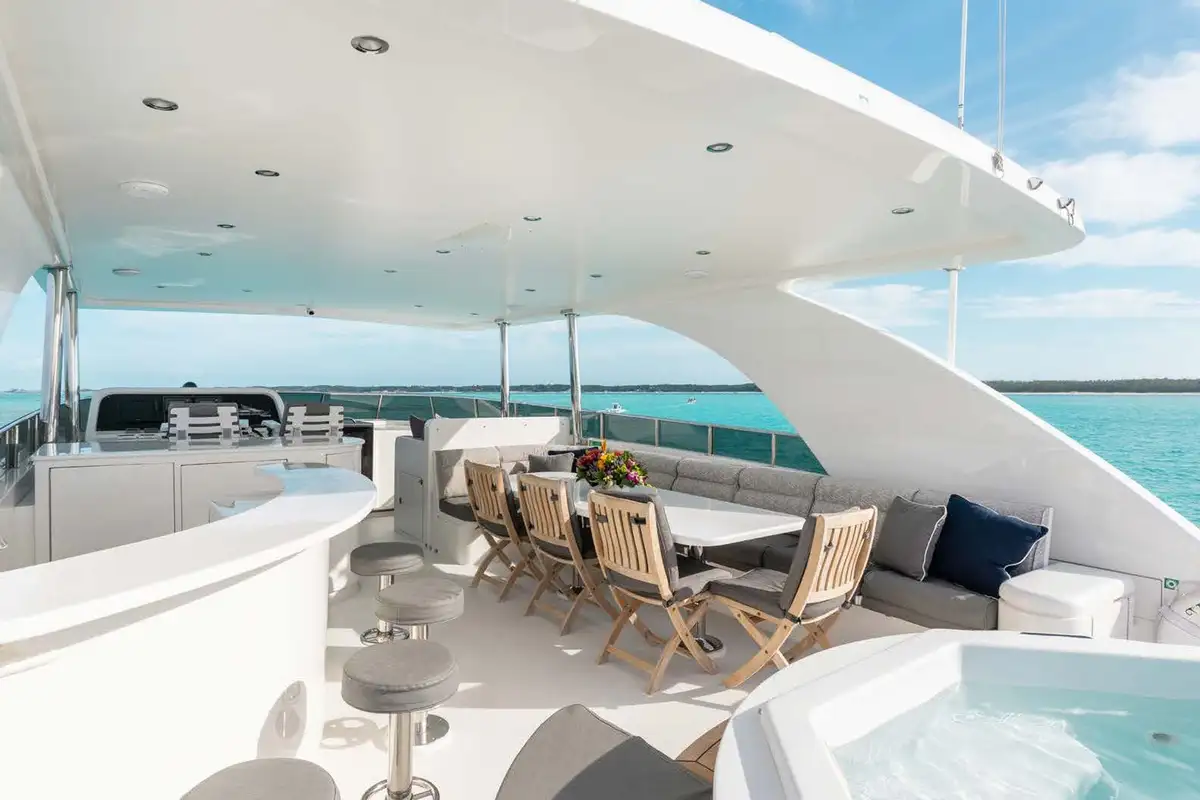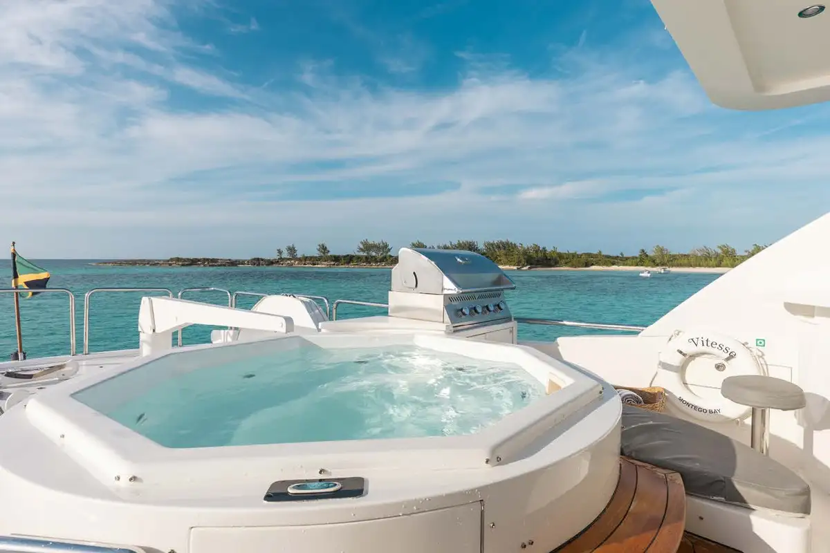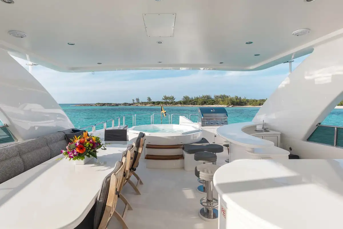 - Impressive outdoor amenities including a jacuzzi, spacious flybridge with wet bar and alfresco dining