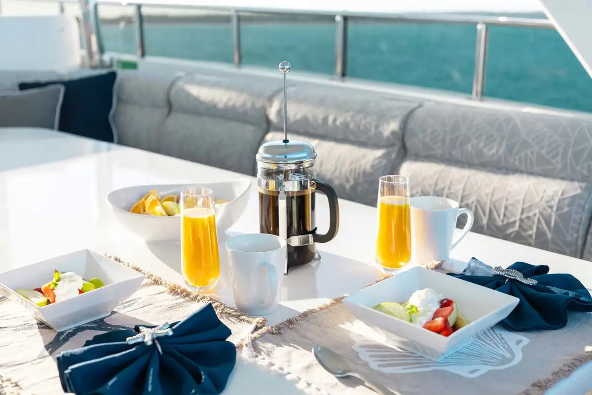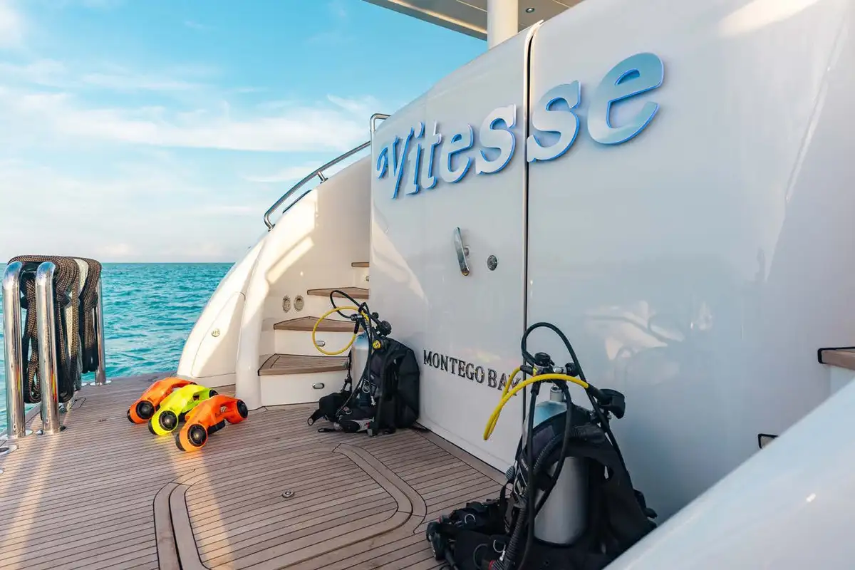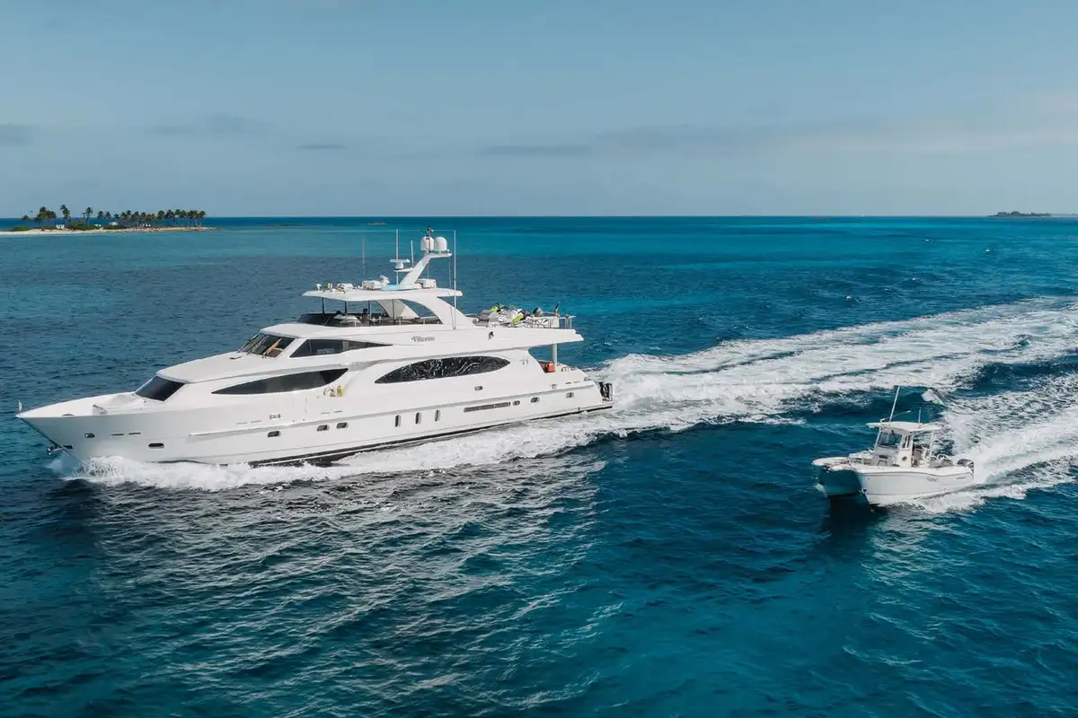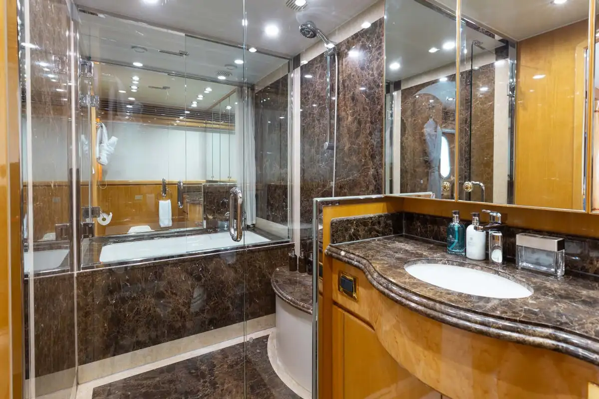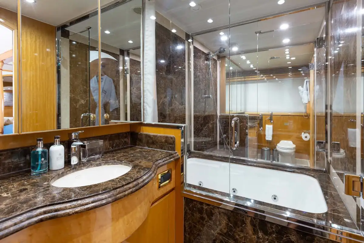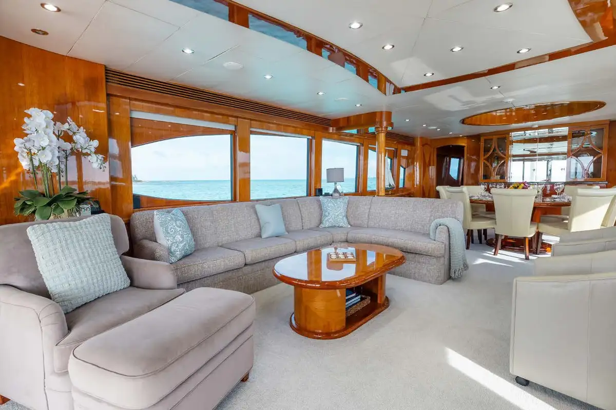 - Impressive outdoor amenities including a jacuzzi, spacious flybridge with wet bar and alfresco dining