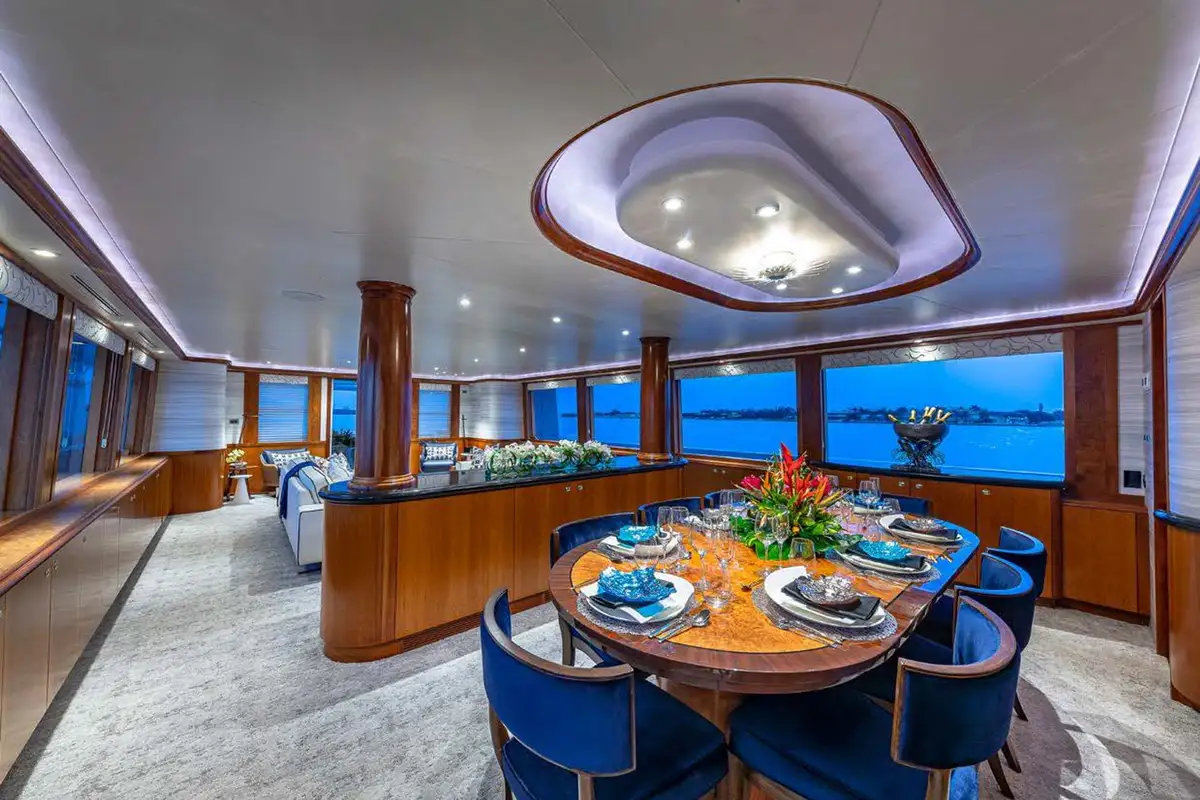 Another restaurant with its own marina – just a quick call from your charter team on the VHF and you'll be ready to enjoy a unique yacht charter experience from this New England beach house-style dining room on the water.