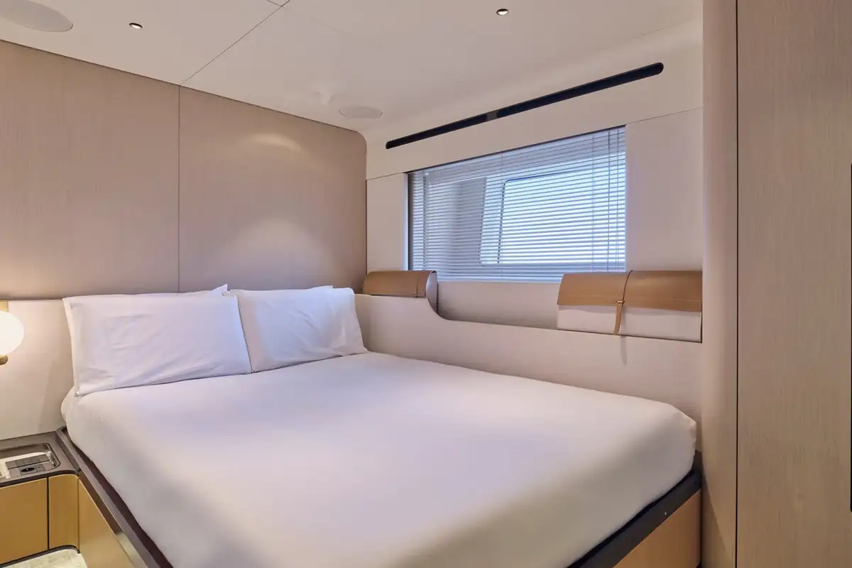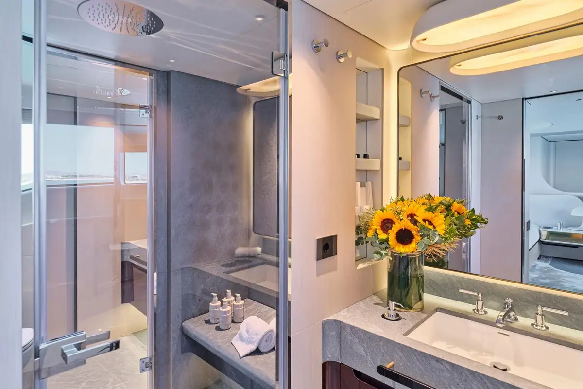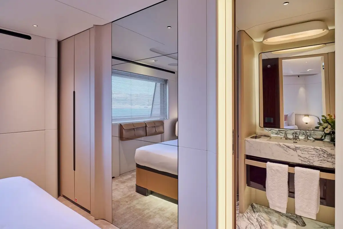 With a full-beam layout, a private balcony, and a his and hers bathroom, the master cabin will exceed every expectation of luxury and relaxation, allowing those who are lucky enough to sleep here a complete retreat.