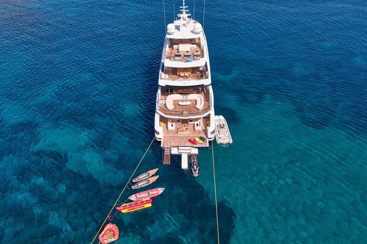An impressive toy box completes the package on board VOLO MARE. With two SeaBobs, two stand up paddleboards, and a jetski amongst the highlights, those wanting a day exploring the local coves or marine life below the waves have enough to entertain for hours.