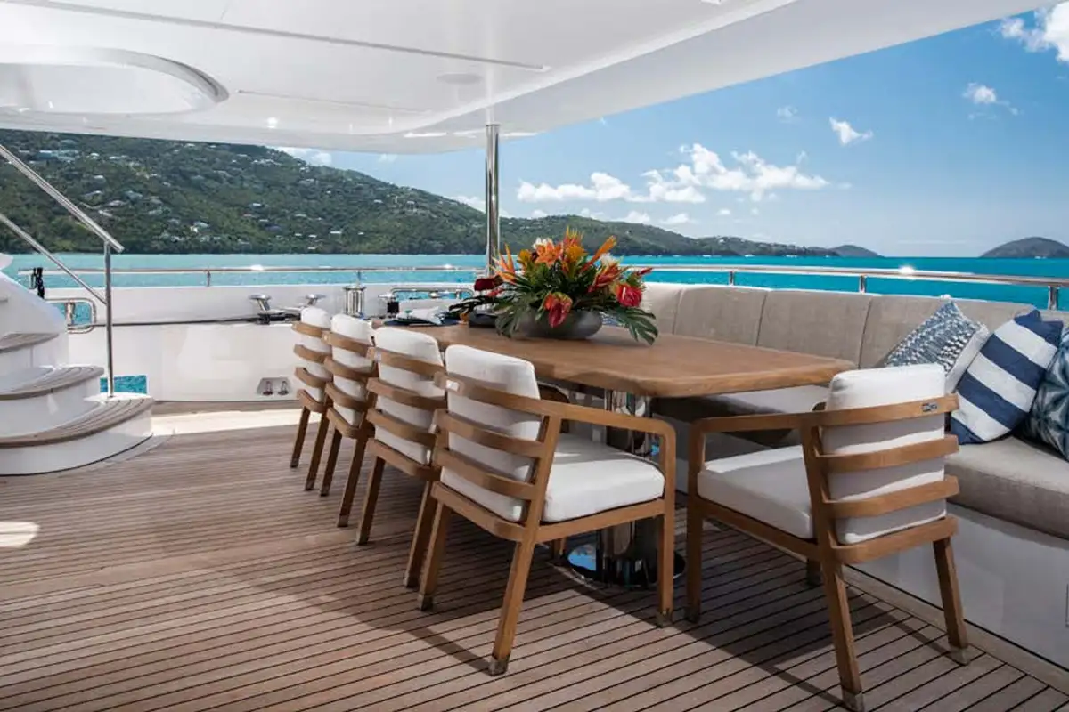 When it comes to al fresco living, more is more on WABASH. Between the alluring sun deck and foredeck offering sun and shade throughout the day and the large aft decks with their dining and lounging spaces, there’s plenty of options on board.