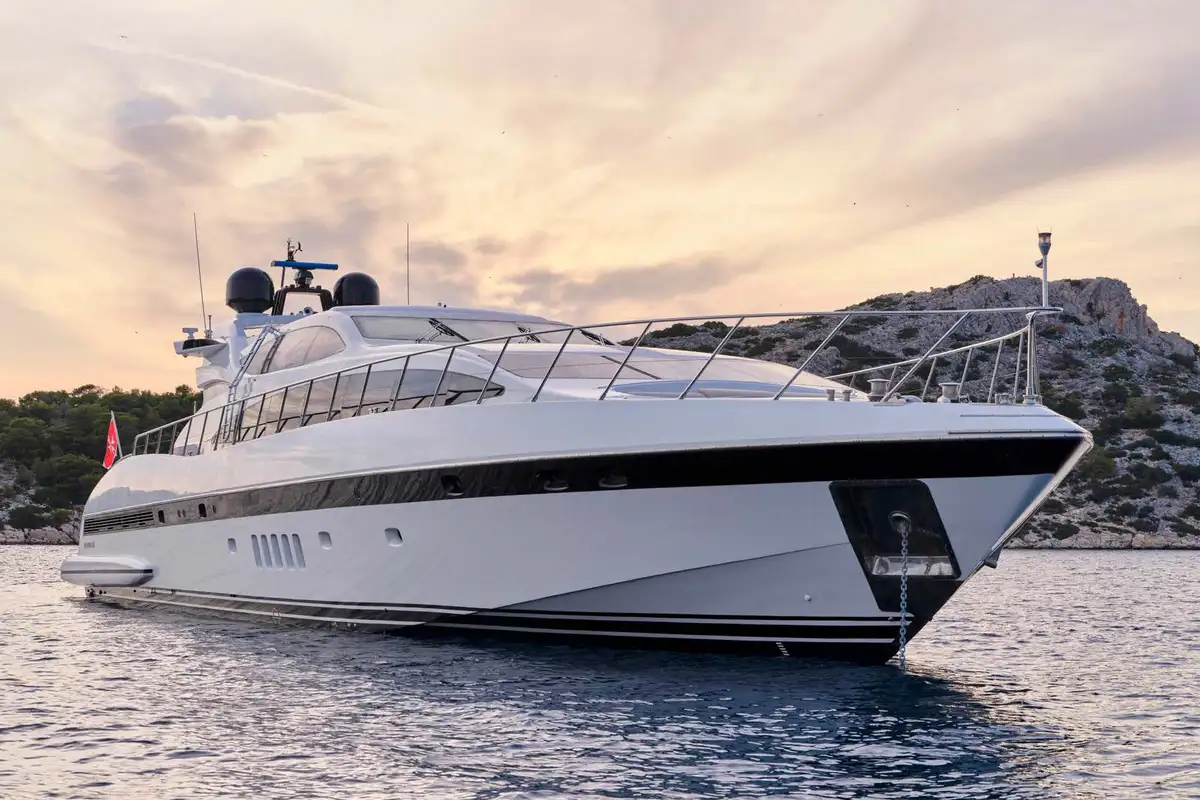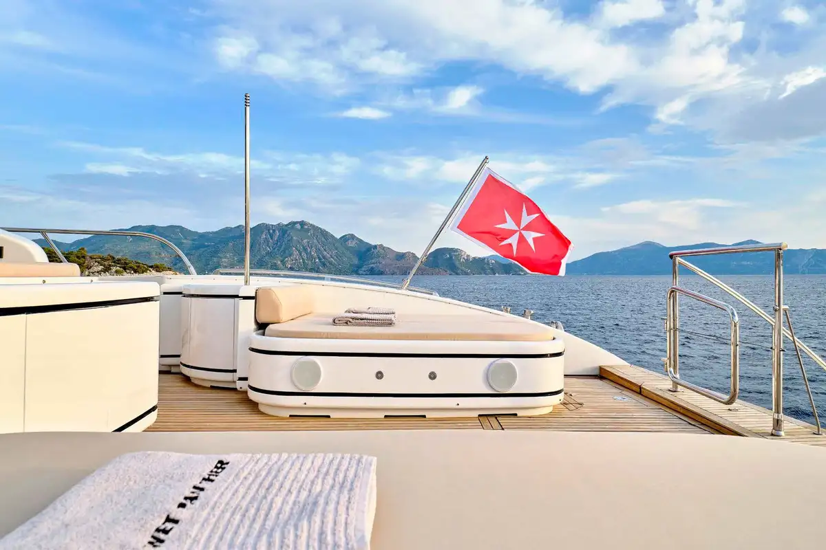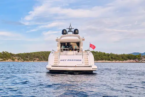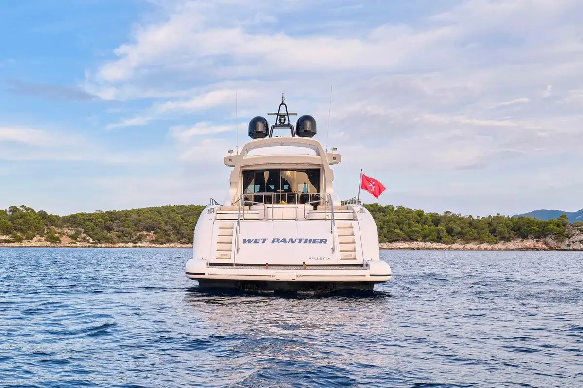 If you’d like to inject a high-octane shot of exhilaration into your yachting holiday, this one is for you. Back on the charter scene after a full refit in 2024, WET PANTHER 31m (103ft) is a tri-deck sports yacht designed to host eight to 10 guests in four cabins with a crew of five – and a serious kick of speed. Cruising at up to 30 knots with her throttles wide open, you can cover a lot of distance in a day, so a yacht like this can expand your cruising horizons.