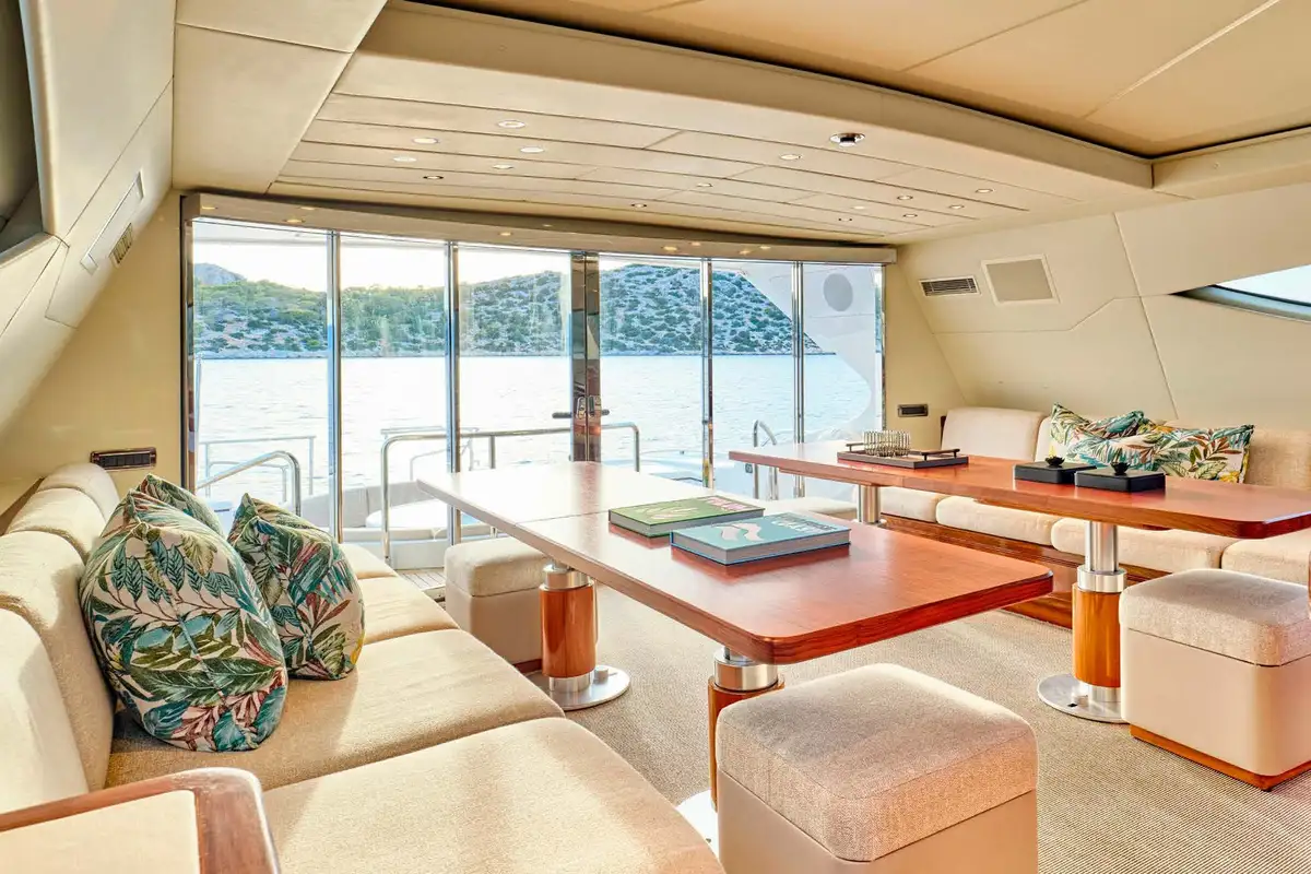 She also carries some brand new watersports toys including a high-spec Sea-Doo Spark Trixx jetski and a pair of SeaBob F5s. Have a go at wakeboarding, waterskiing or paddleboarding, then relax on the inflatable island with its seawater pool – there’s plenty of aquatic fun for all.