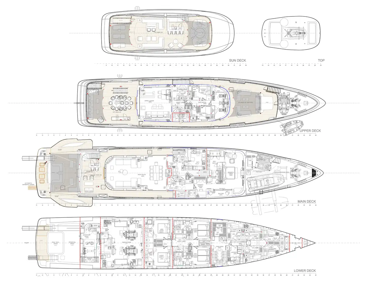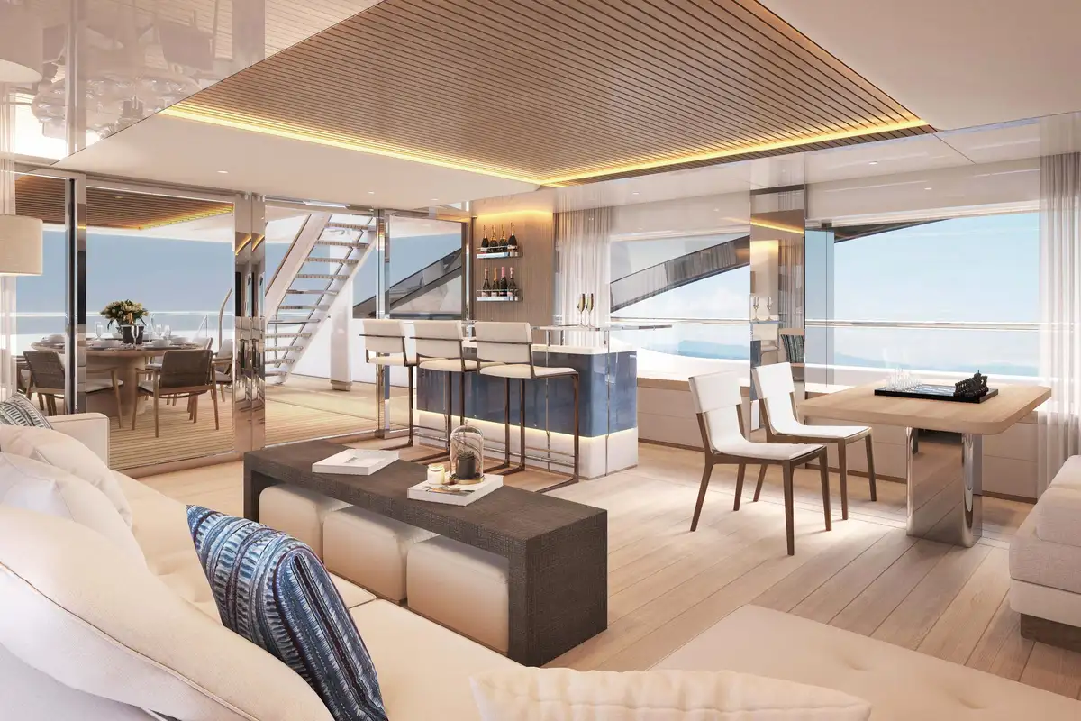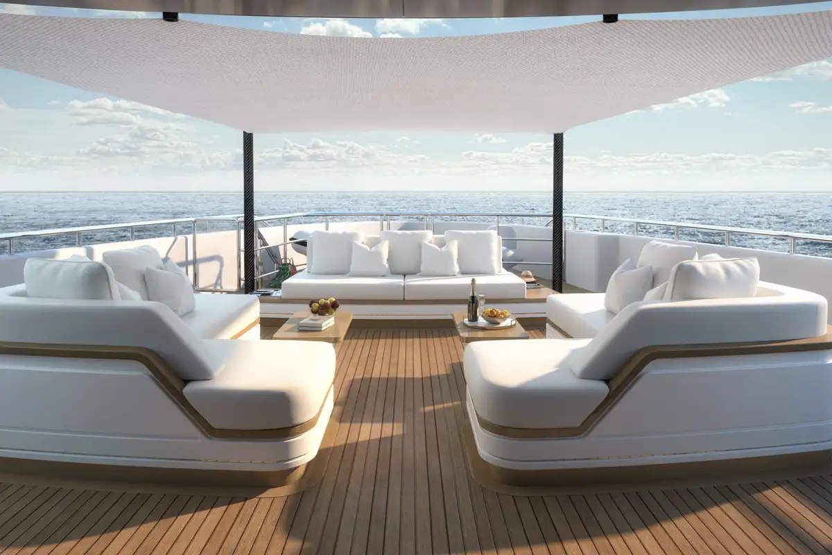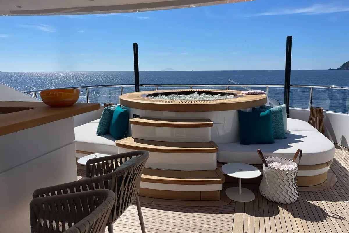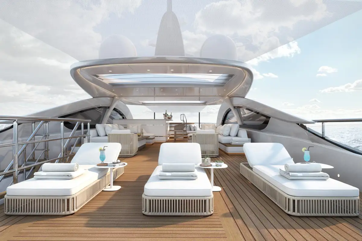The sun deck offers 100sqm of pure freedom – a space for sunrise yoga, leisurely afternoons in the jacuzzi, or glamorous celebrations under the stars. Every deck has been designed to flow seamlessly, giving you the freedom to create your own rhythm: from lively watersports sessions to quiet family dinners.