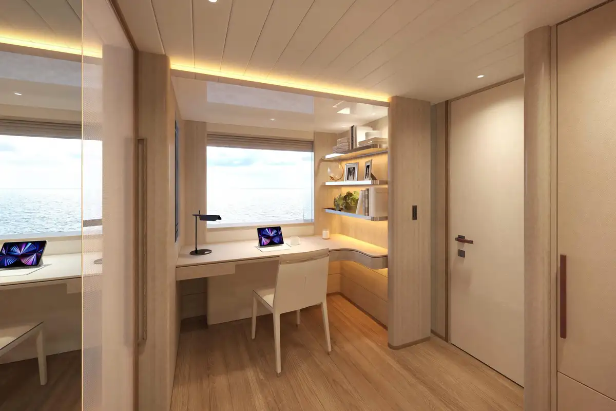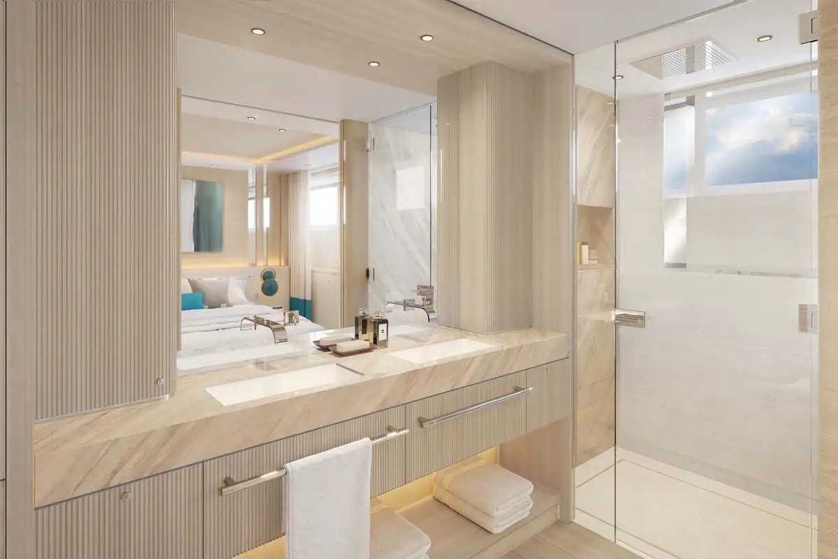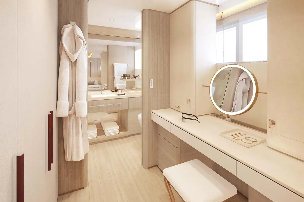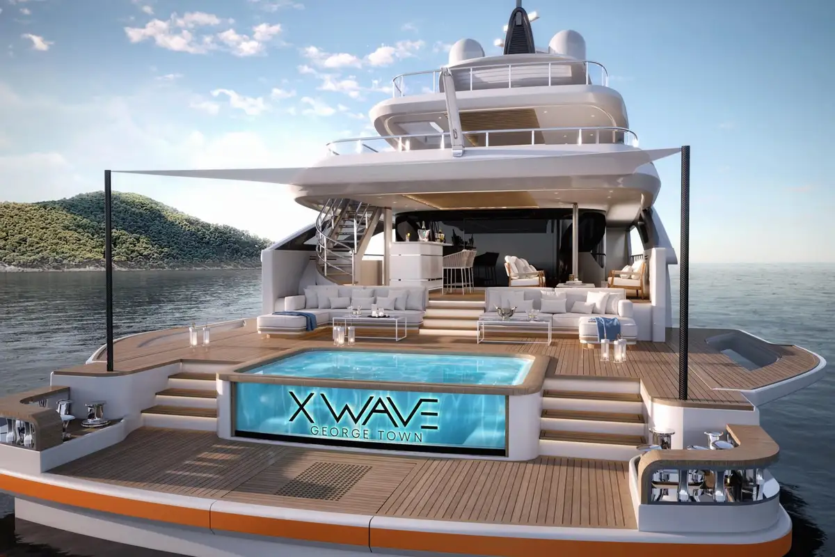 Life on board naturally gravitates towards the signature Oasis deck – the beating heart of XWAVE. Picture yourself stretched out by the waterside pool, watching the fold-out wings transform the space into an oceanfront terrace. As the day winds down, this is the place for cocktails at sunset and unforgettable gatherings.