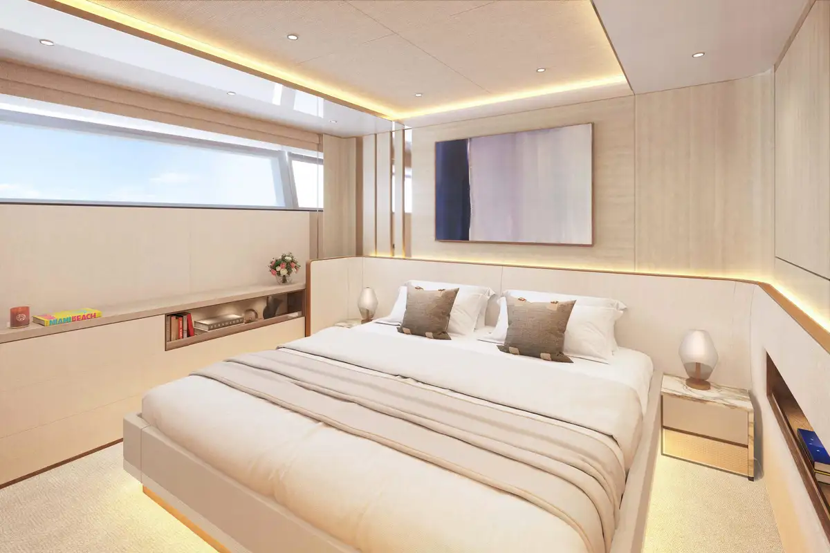 XWAVE welcomes 10 guests across five beautifully appointed cabins. The full-beam master is your private sanctuary, complete with its own balcony and outdoor shower, plus larger windows than any other B.Now 50 yacht – a rare privilege that lets you be entirely at one with the sea. The four guest cabins each feature golden spider marble en suites, with two doubles and two convertible twins offering flexibility for families and friends, ensuring everyone feels perfectly at home.