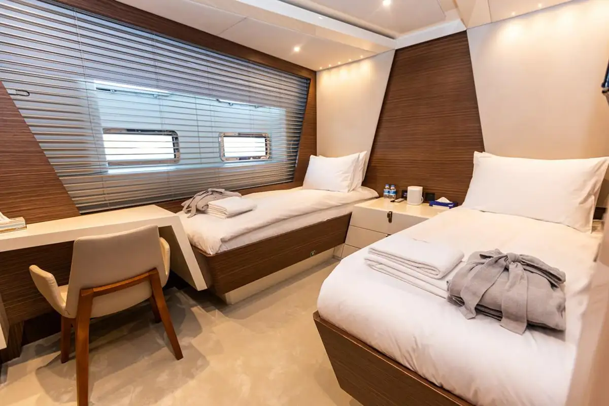 - Zero speed stabilisers to reduce any rolling motion while at anchor
