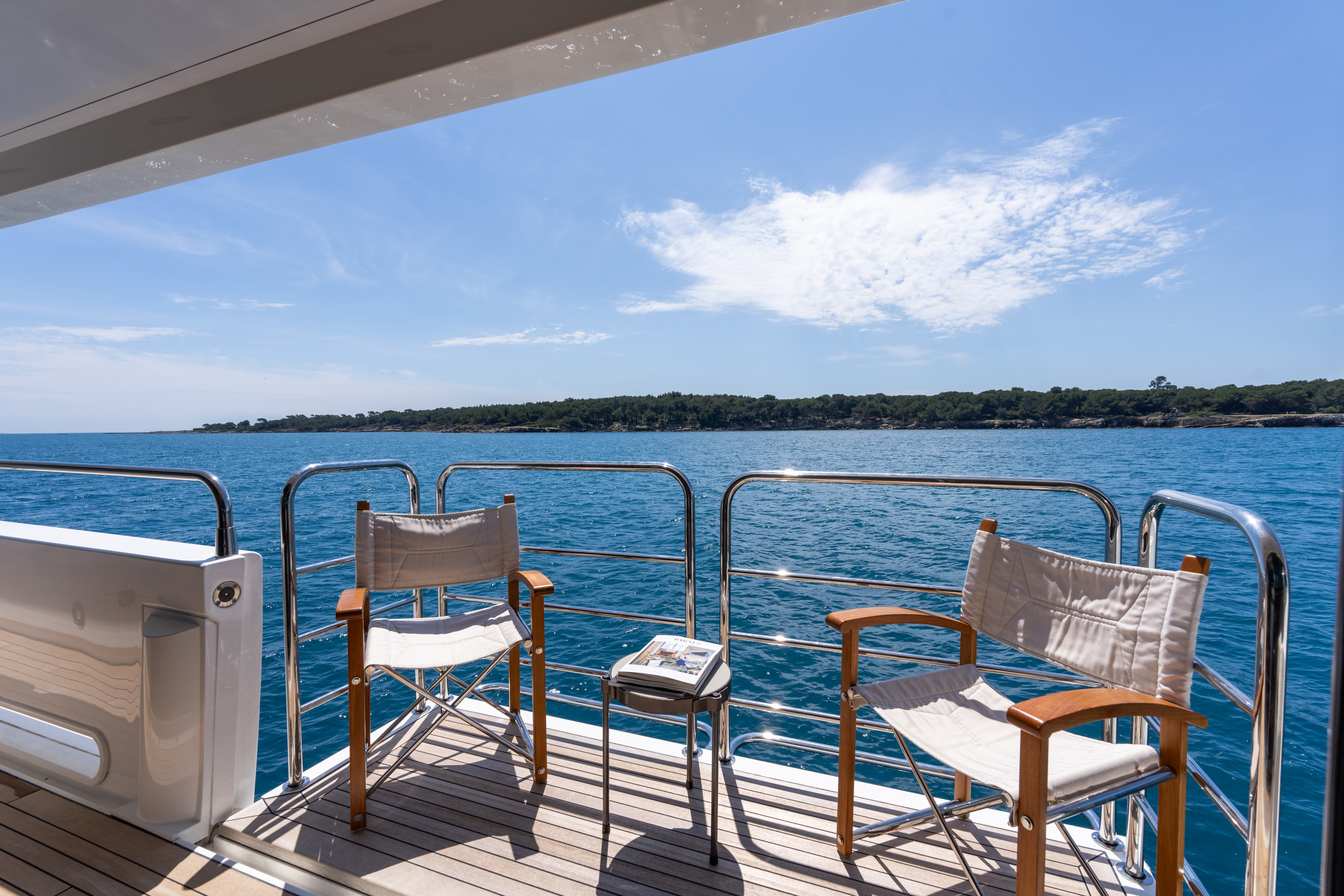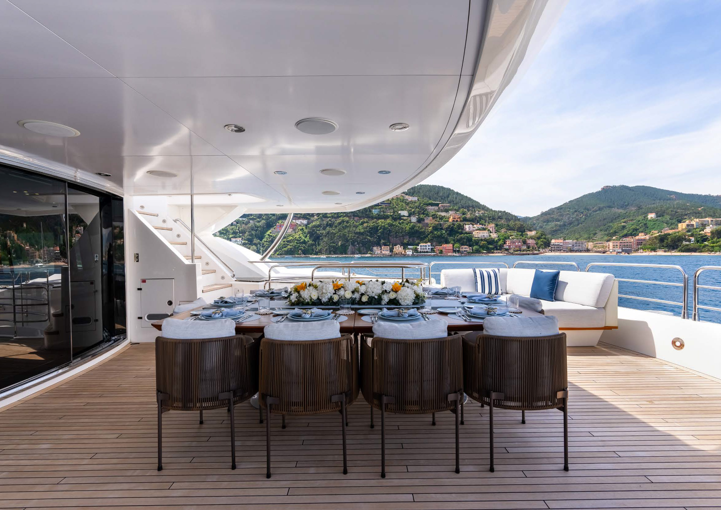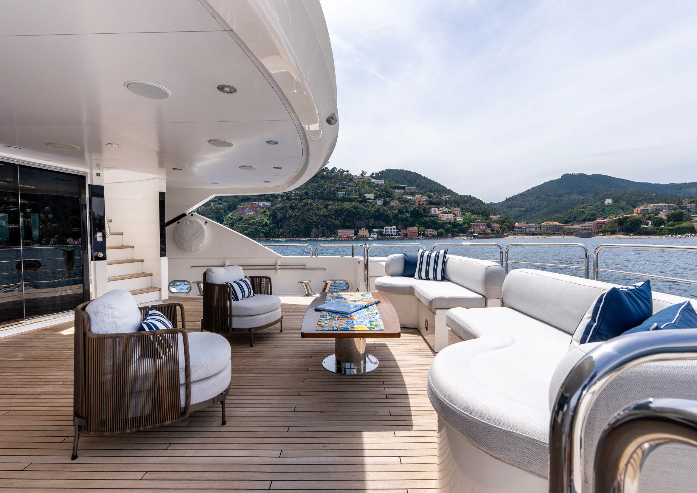 An abundance of desk space awaits, from the sun deck with jacuzzi, wet bar and comfortable seating to the upper deck with its open-air dining and plentiful sofa seating.