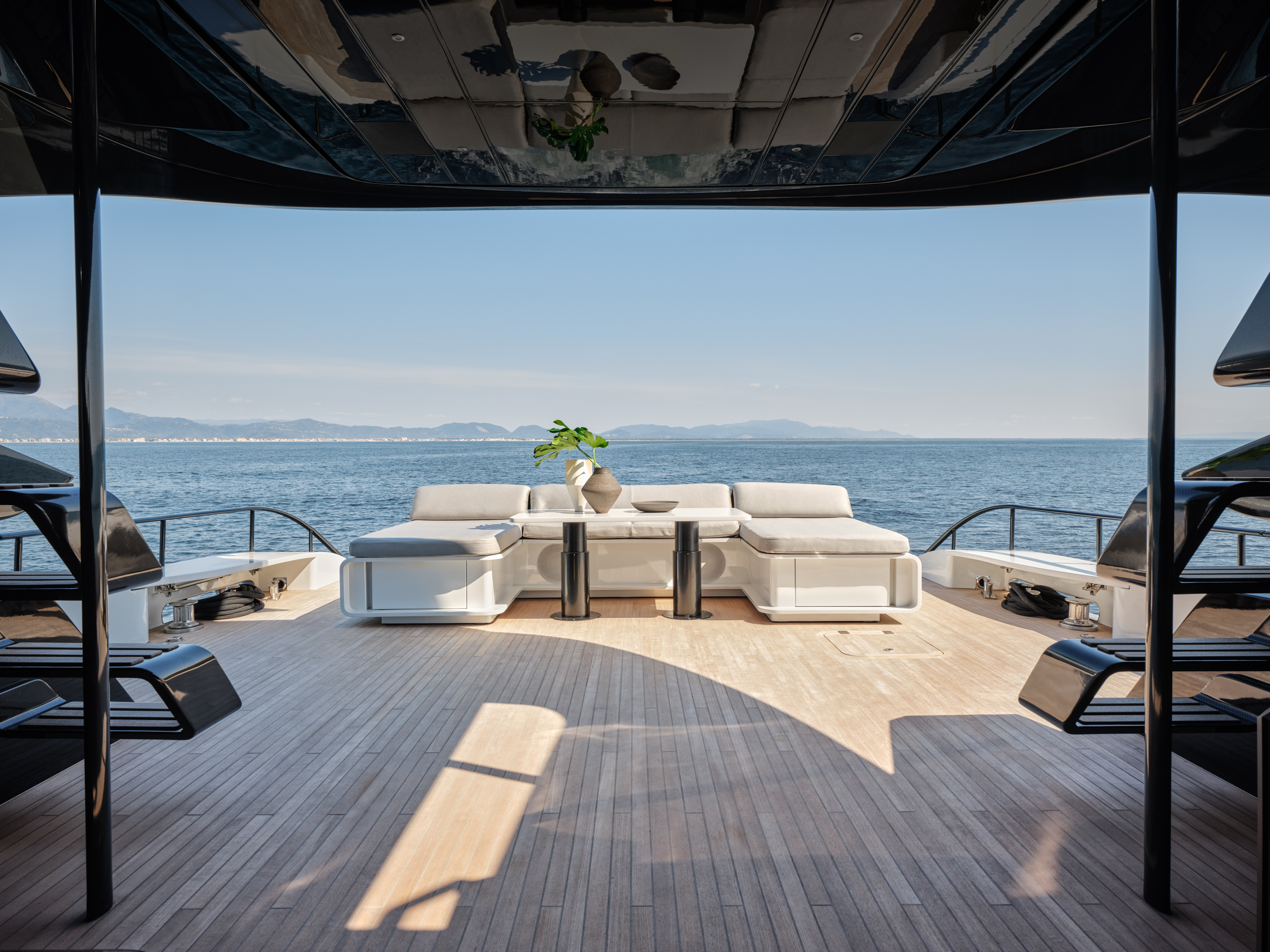 Inside, light-filled interiors feel calm and refined, with generous social areas that flow naturally from deck to lounge. Outside, expansive deck spaces invite long, unhurried days – from sunbathing and open-air dining to evenings spent watching the horizon fade. Polished yet welcoming, CLELIA III is ideal for laid-back escapes, island cruising and sharing unforgettable moments at sea.