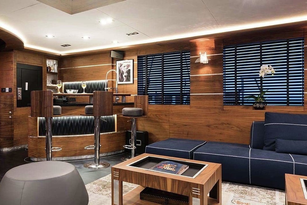 If our guests want to host friends on board, we can have a quayside event for up to 50 people. This is because of the foredeck design, which allows us to clear the deck completely and create a wide space for people to gather. It is a lot of fun for our charterers to invite friends to join them for an evening.