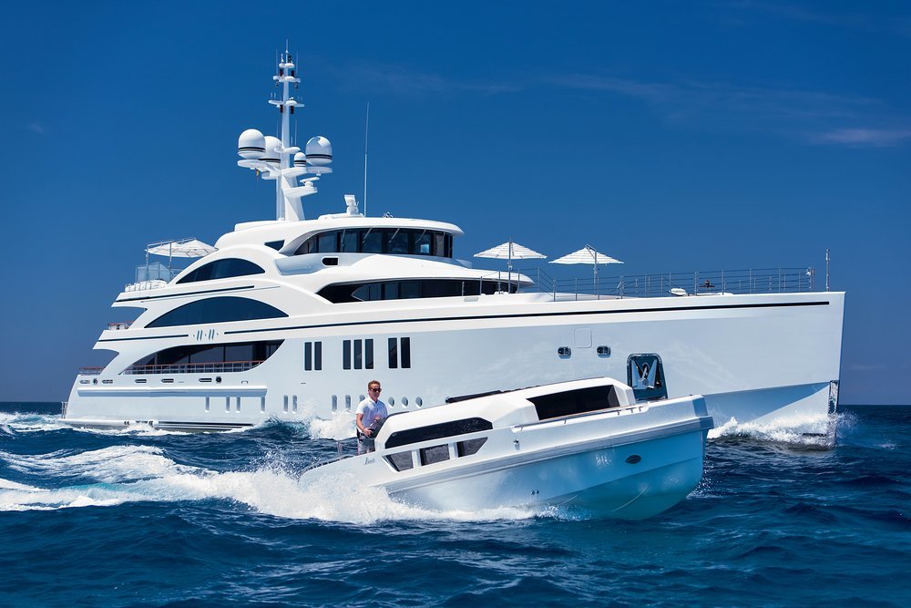 DOMANI’s 10.4m/34ft Jupiter tow tender is the height of versatility in shallow waters.