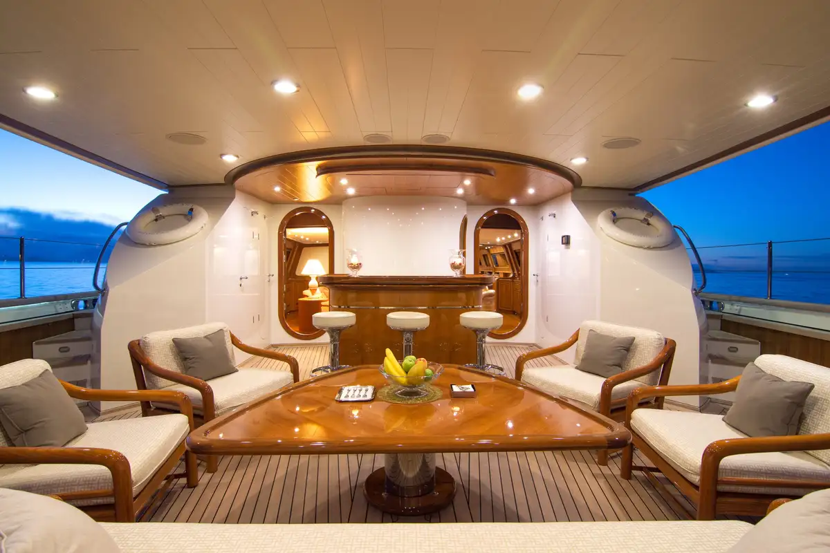 - Exceptional comfort and relaxation due to extended fly bridge, jacuzzi and large sun pads