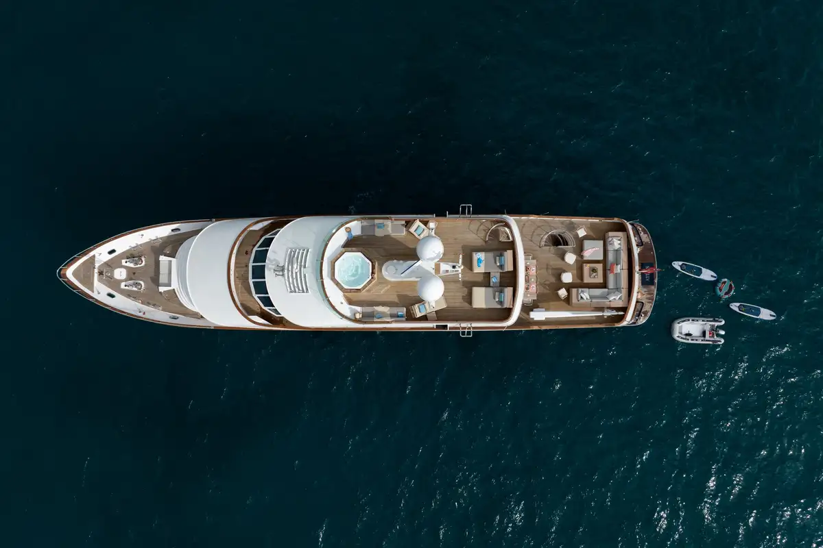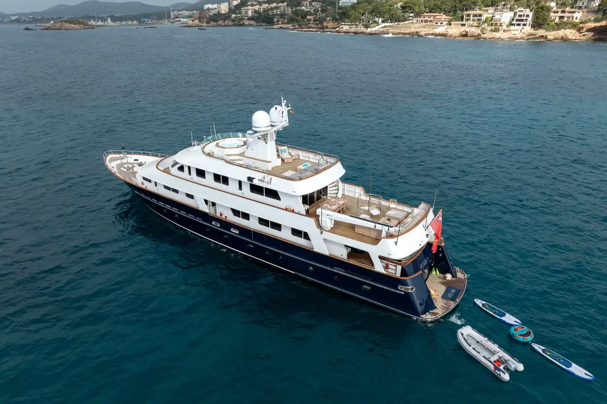 ATLAS is a 38m (124.7ft) displacement yacht built by Ocean Pacifico in 2000. She has a steel hull and aluminium superstructure and has a gross tonnage of 272GT. Her exterior and interior designs were by the Dutch company Diana Yacht Design. She is RINA classed, built to Lloyds +100 A1 Yacht classification and refitted in 2021