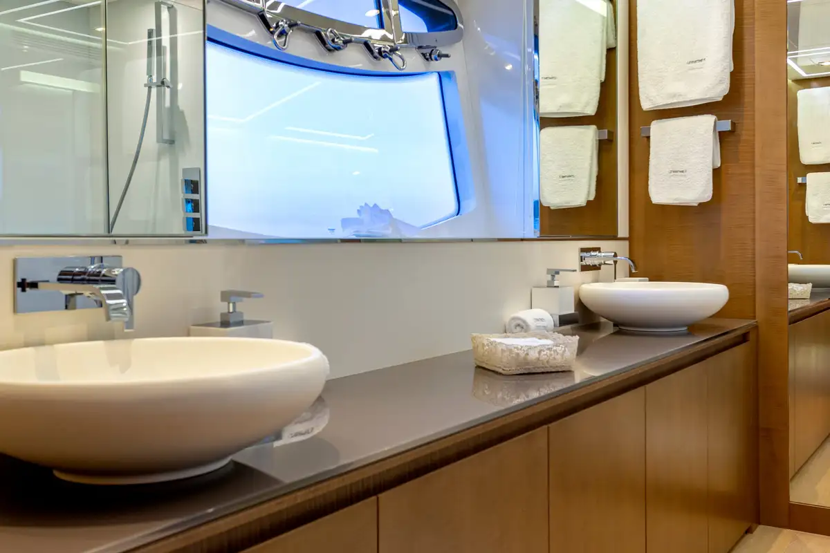 Moving forwards there are two guests cabins; one twin and a convertible twin/double cabin. Furthest forward is the en suite double VIP cabin. The configuration is designed to give you the flexibility.