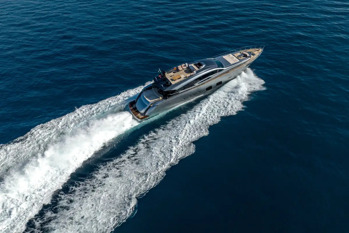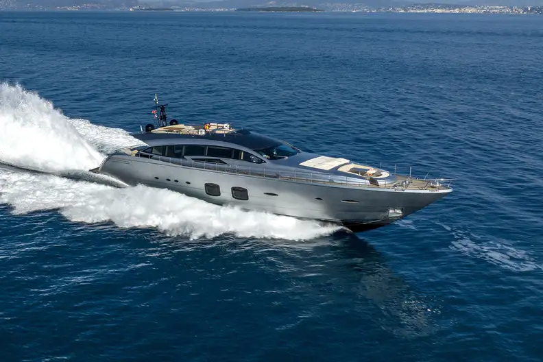 - Head-turning metallic grey Pershing 108