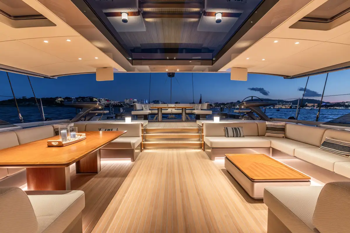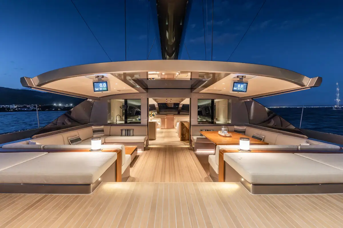 - Features Vitters Shipyard's innovations like retractable V-Bollars for sleek deck aesthetics