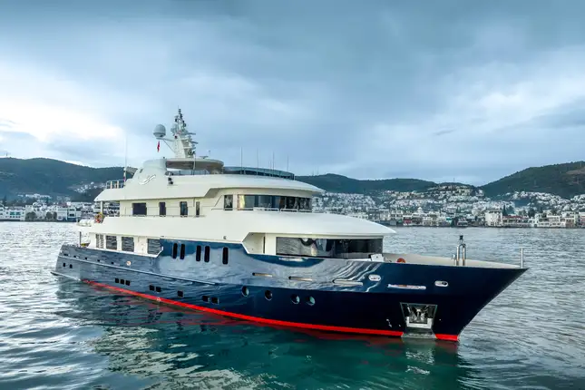 NO DESTINATION is the perfect yacht for an adventure seeker, blending the capability of a support vessel with the luxury guest spaces of a superyacht. Originally delivered in 2009 by the Dutch shipyard Damen as a Royal Navy crew support vessel, NO DESTINATION is a 37.5m (123ft) explorer yacht conversion built to Bureau Veritas (BV) unlimited navigation classification.