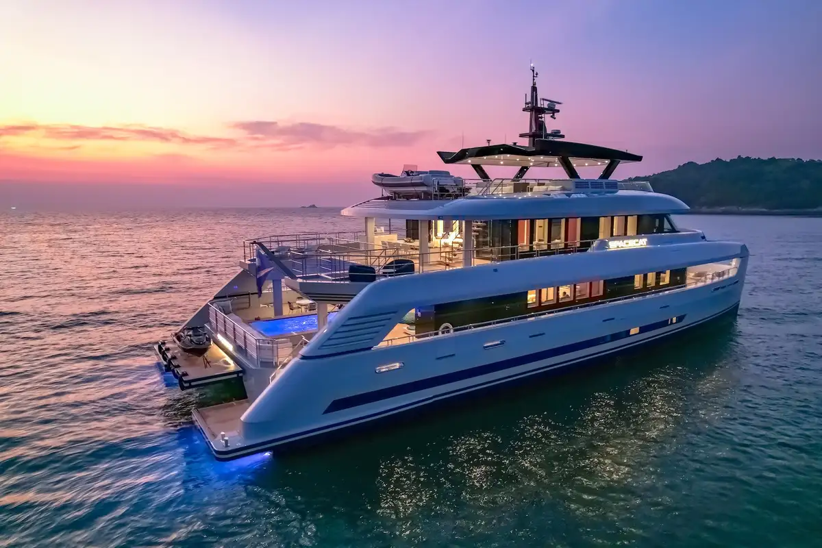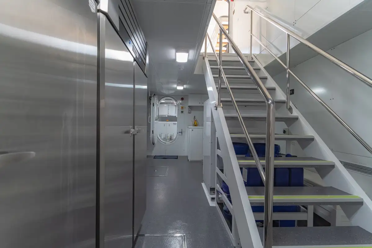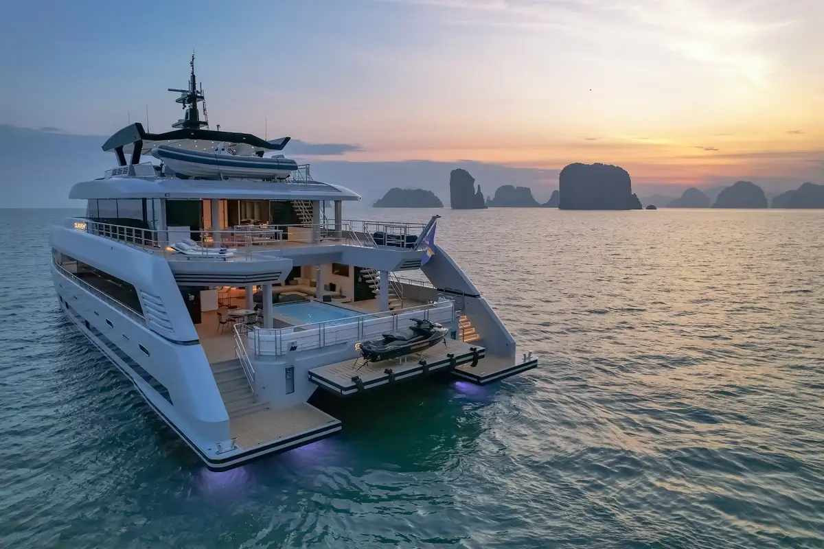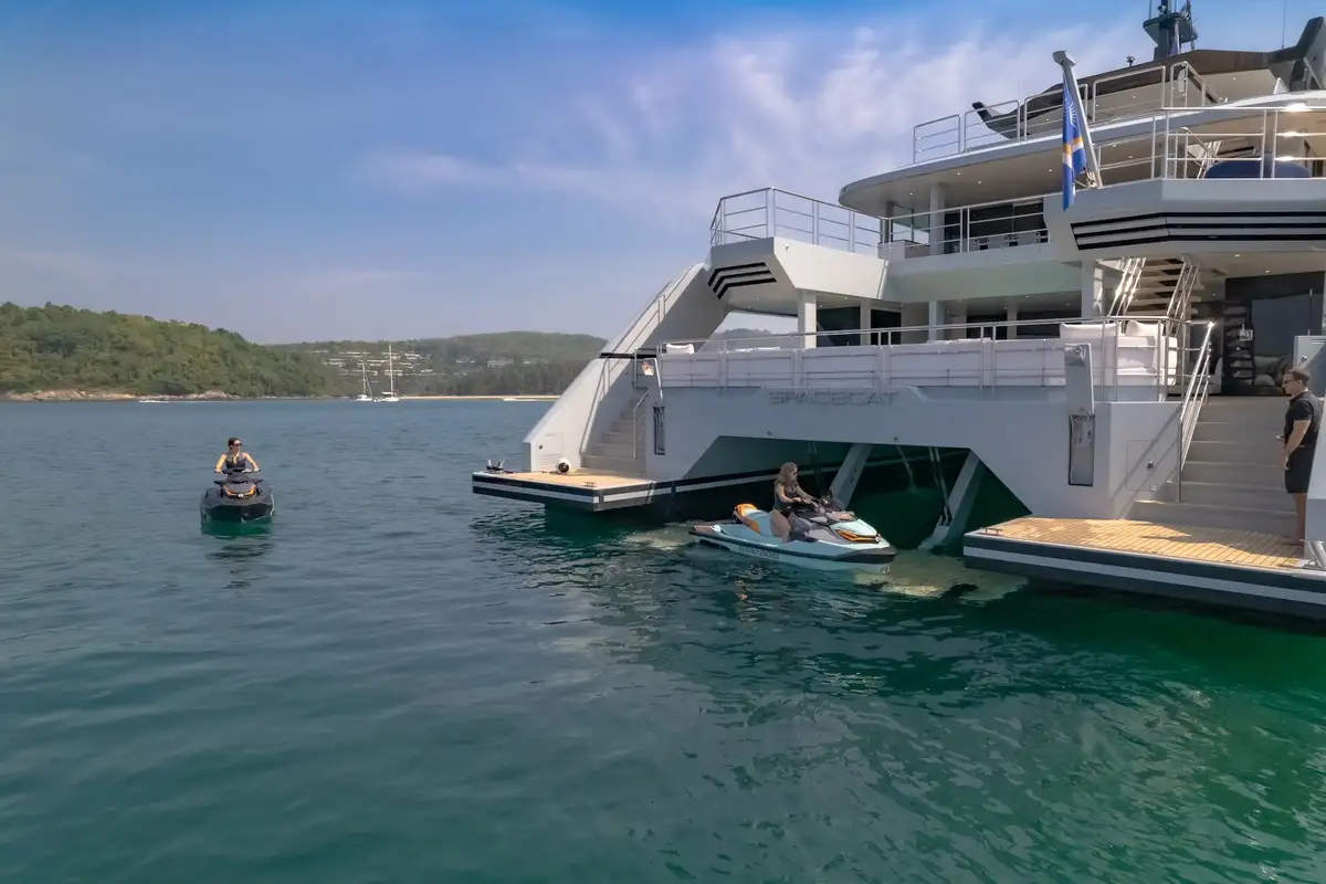 SPACECAT’s shallow draft allows access to secluded bays, making it the perfect vessel for island hopping. She cruises at 17 knots, can reach a maximum of 23 knots, and has an excellent range of 3,000nm at 11 knots.