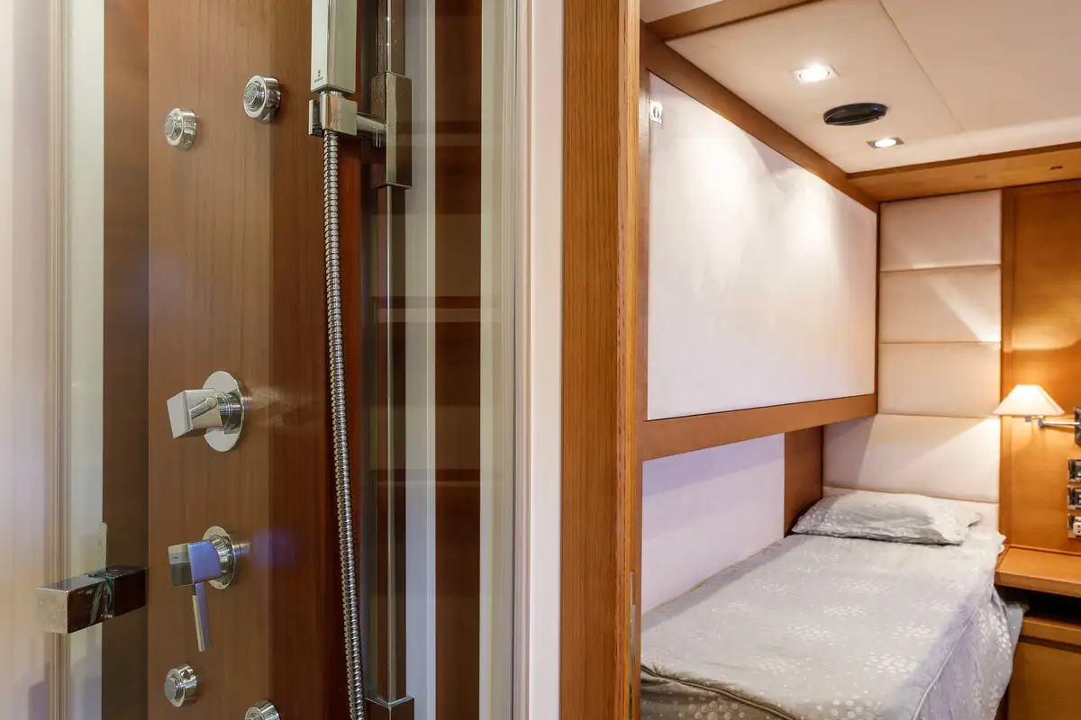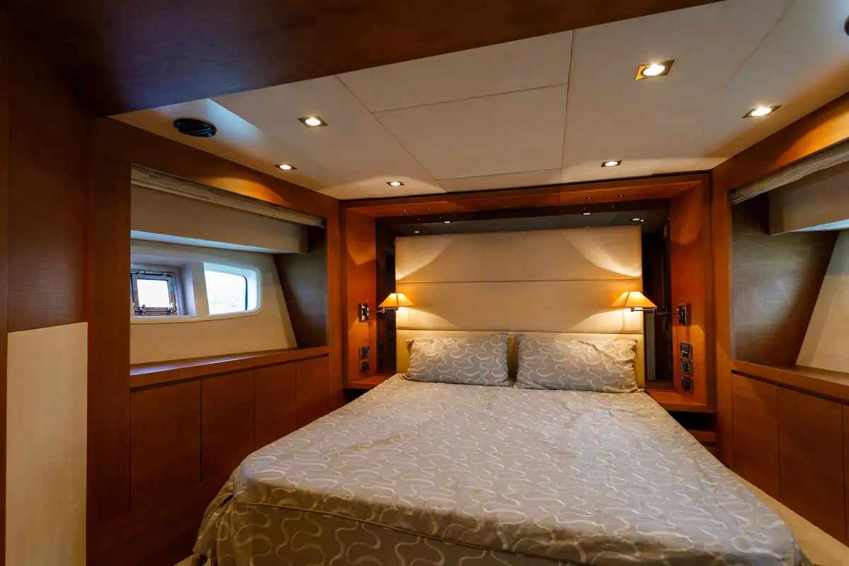 Onboard, TRANQUILITY offers four beautifully designed cabins (1 master, 1 queen & 2 twin with a pull-man bed), comfortably accommodating up to 10 guests. The thoughtful layout allows guests to fully unwind in style and comfort. Whether you're seeking a peaceful retreat or hosting an entertaining gathering, TRANQUILITY provides the perfect balance of luxury and functionality, offering an unforgettable experience at sea.