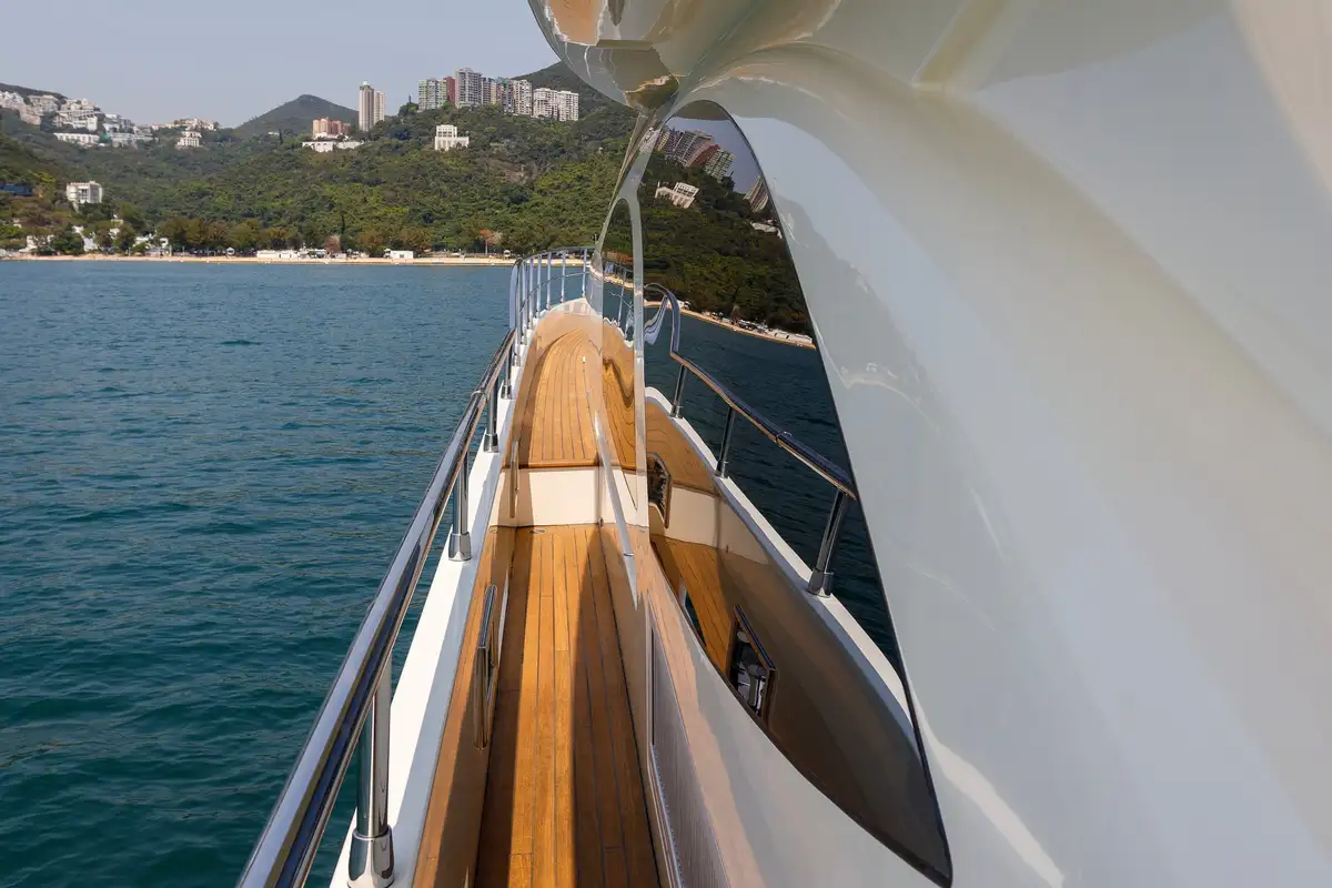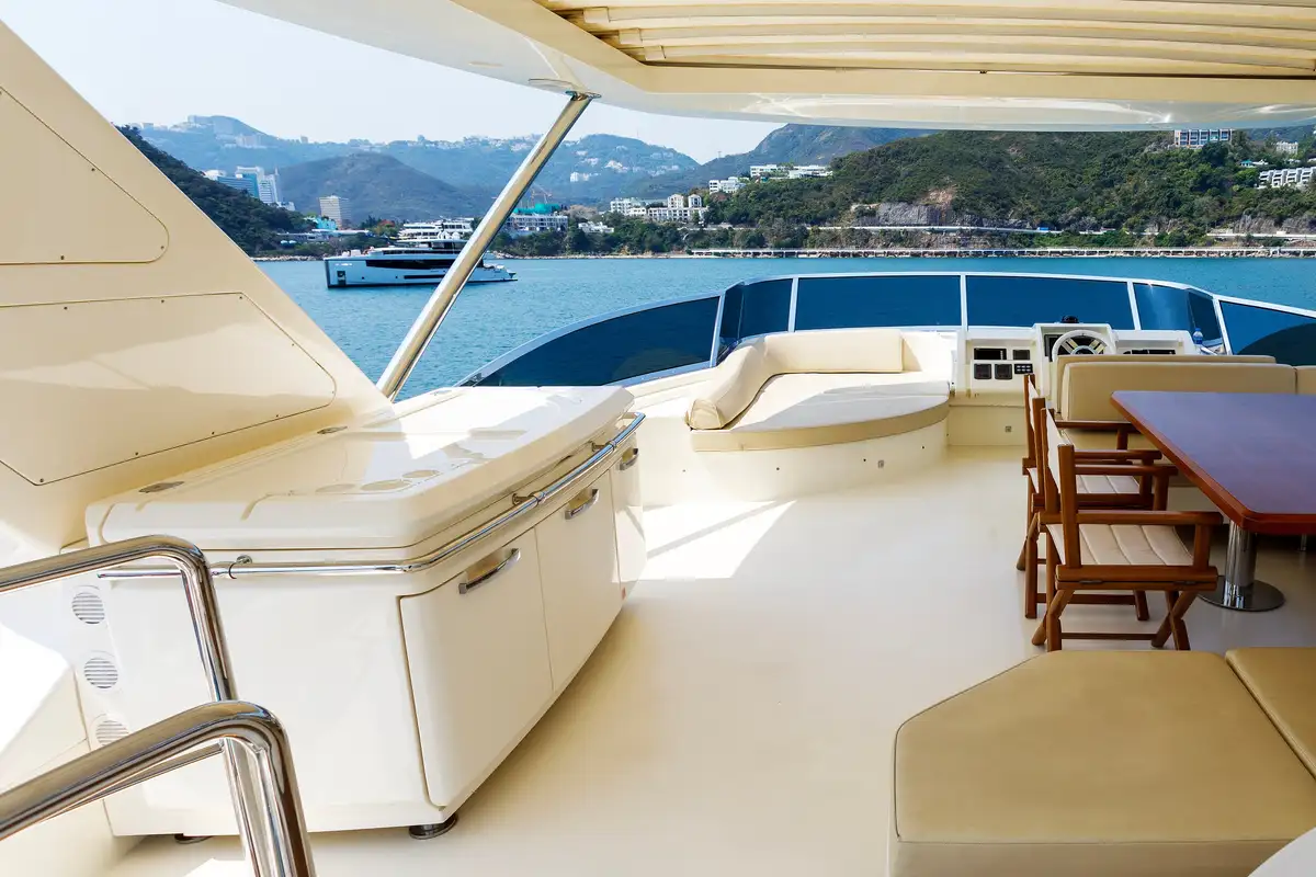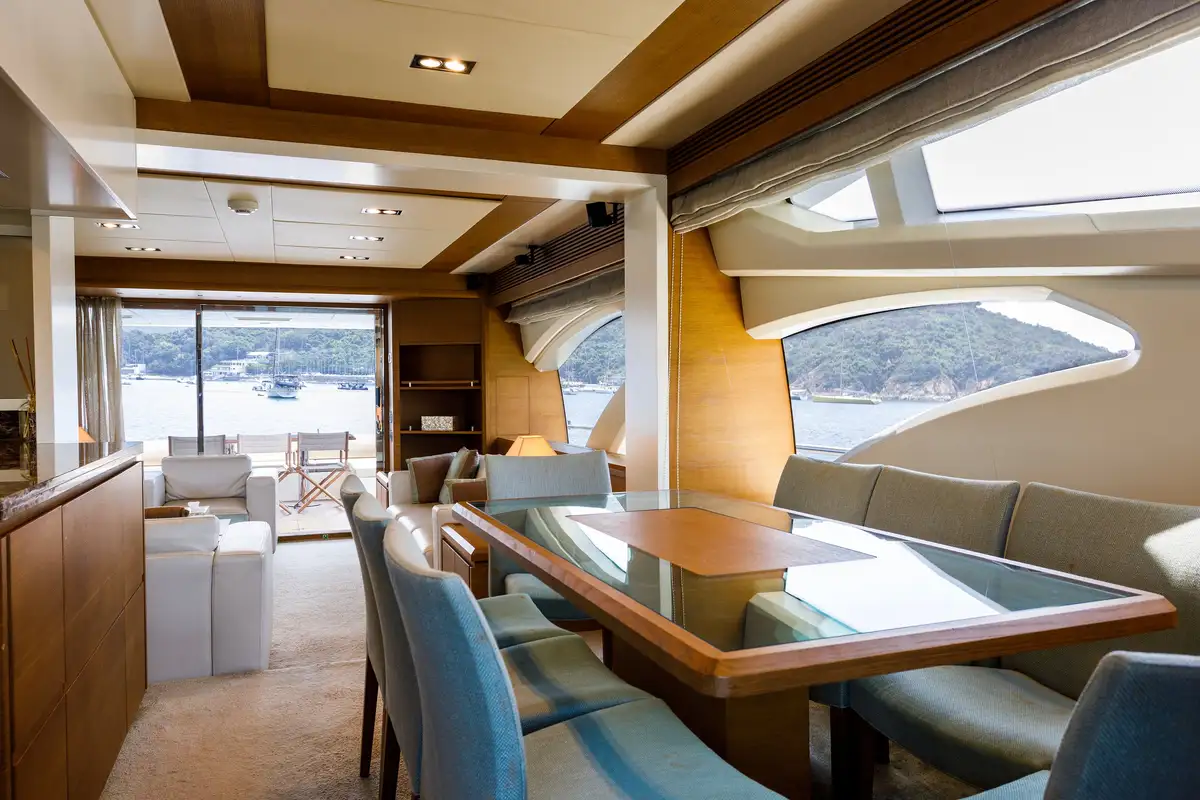 TRANQUILITY, a Azimut 78 built in 2011, seamlessly blends the spacious elegance of larger yachts with the agility and performance of a smaller boat. Its exceptional design offers a refined atmosphere throughout, featuring expansive living spaces. A groundbreaking layout when first launched, TRANQUILITY boasts a fully separated galley and crew quarters, ensuring enhanced privacy and ultimate comfort for guests.