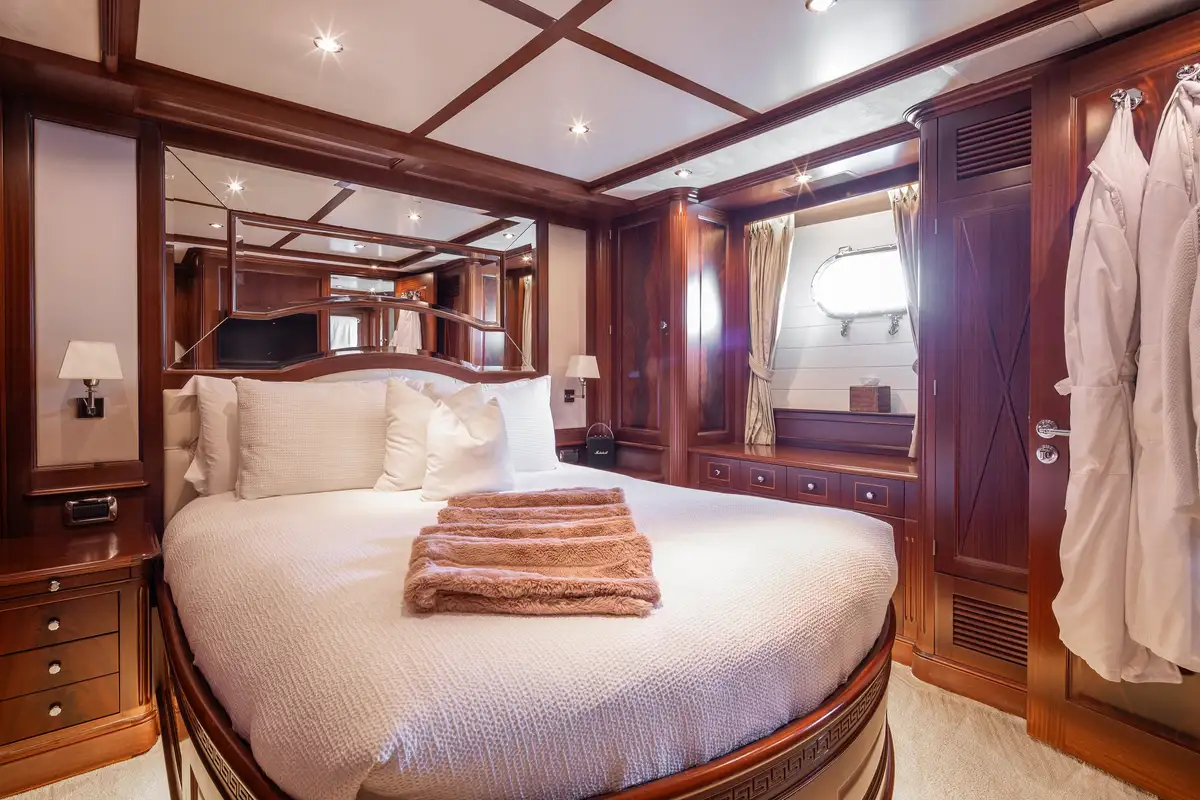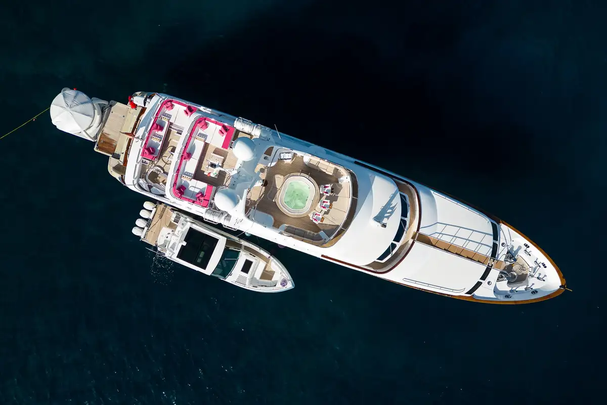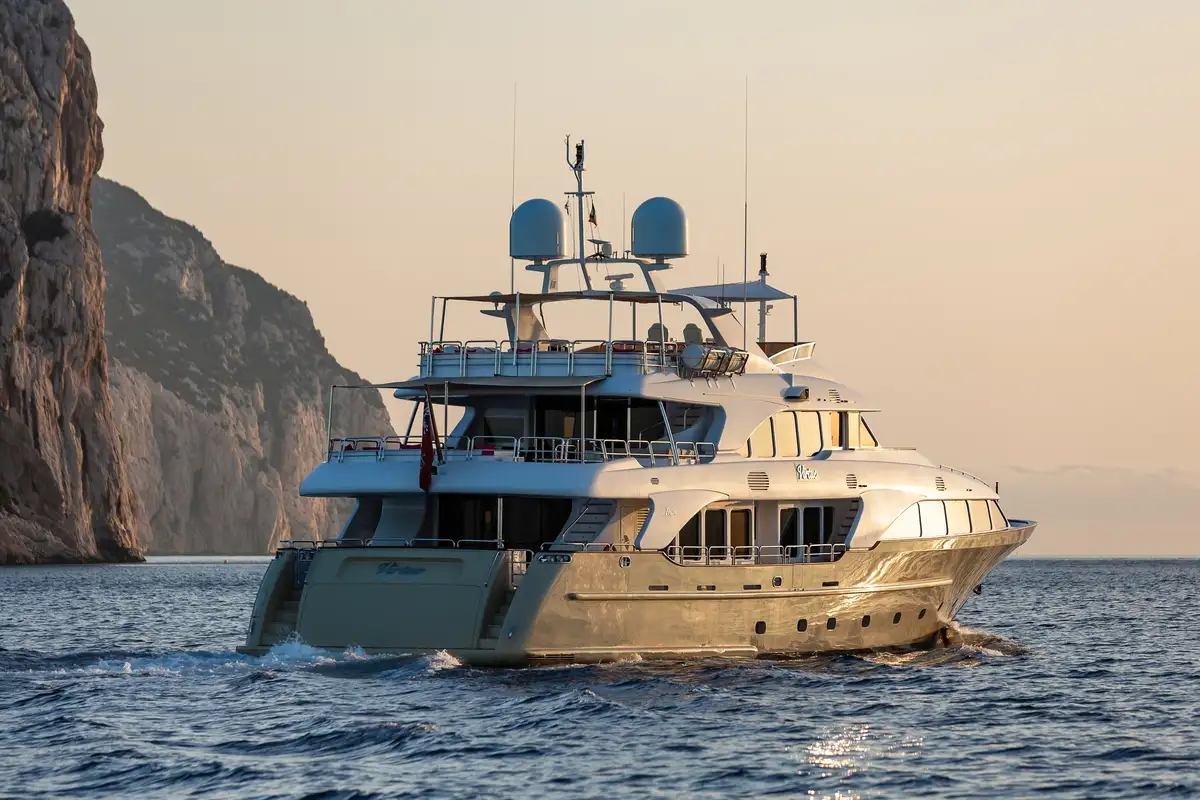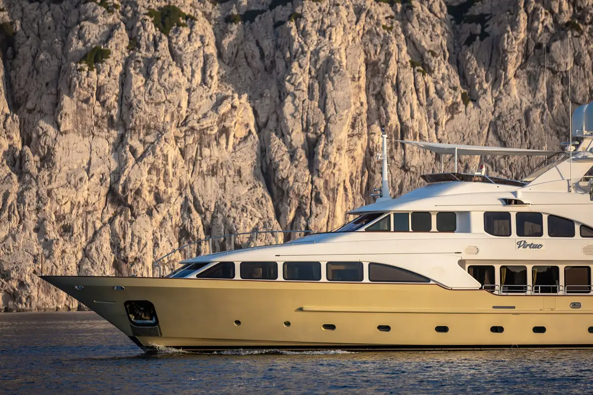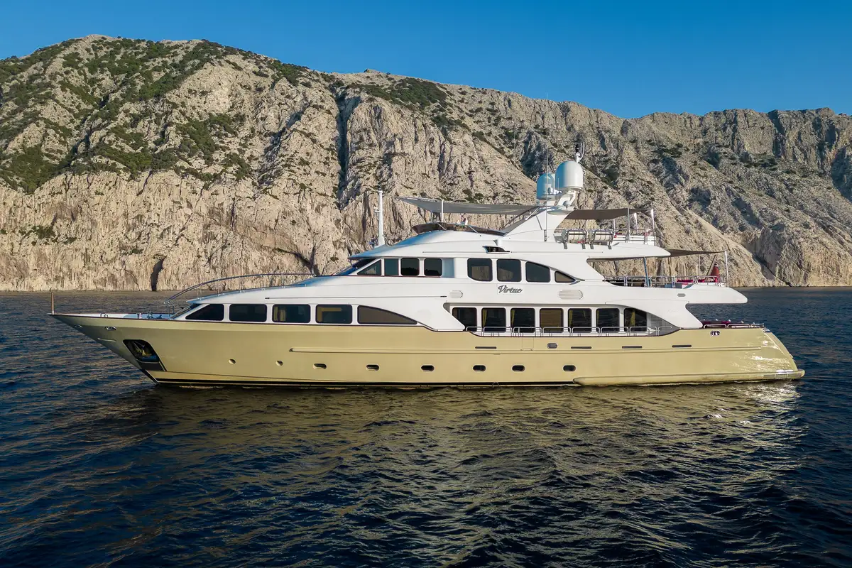 Designed by renowned naval architect Stefano Righini, VIRTUE was constructed in GRP by the esteemed Italian shipyard Benetti to RINA classification standards and delivered in 2008. Her sophisticated interior, conceived by acclaimed designer François Zuretti, accommodates up to 12 guests across five well-appointed cabins: a full-beam master suite, a VIP suite, one double cabin, and two twin cabins, each complemented by a pullman berth. All guest accommodations are equipped with state-of-the-art entertainment systems and complimented by luxurious en suite facilities. Crew quarters for up to seven are also provided on board, ensuring exceptional service and comfort for all guests.
