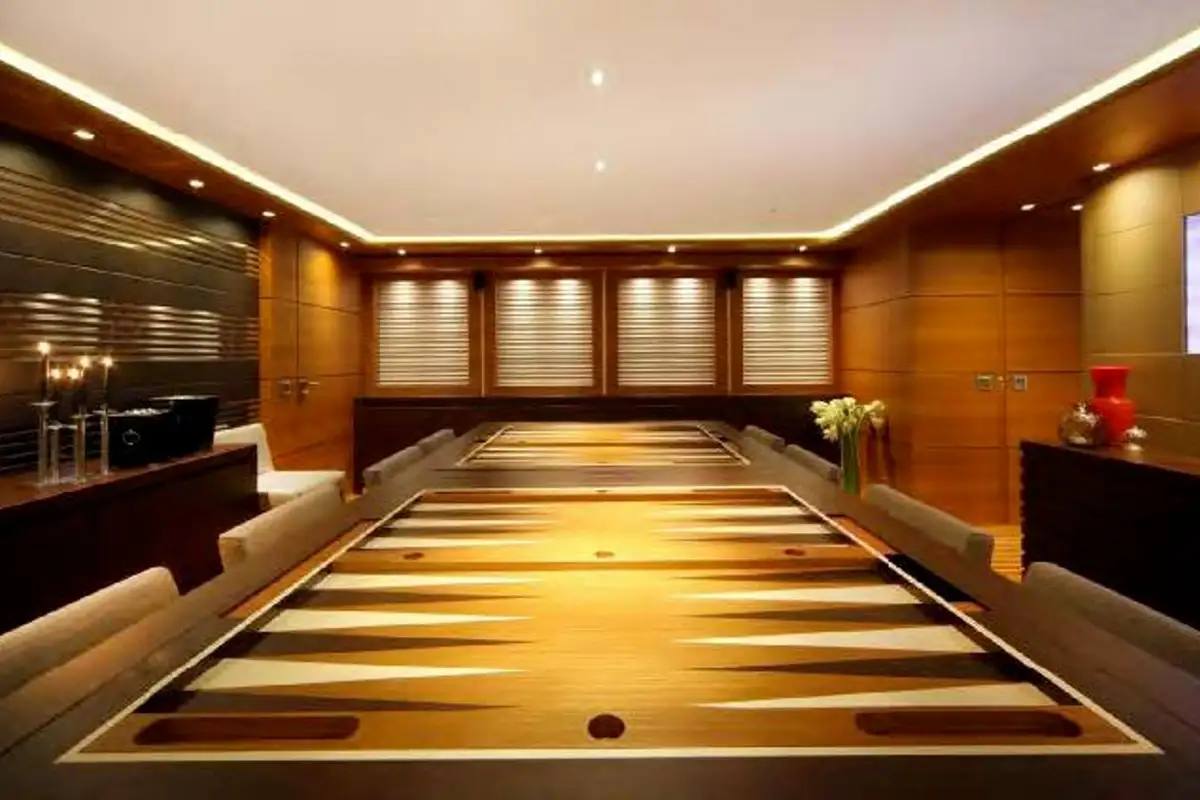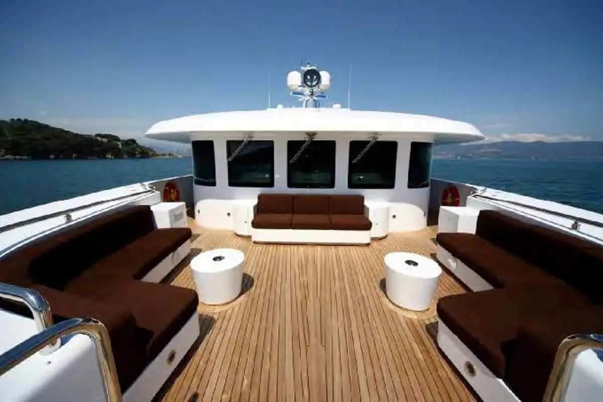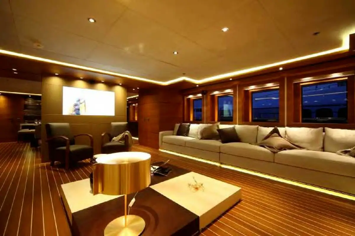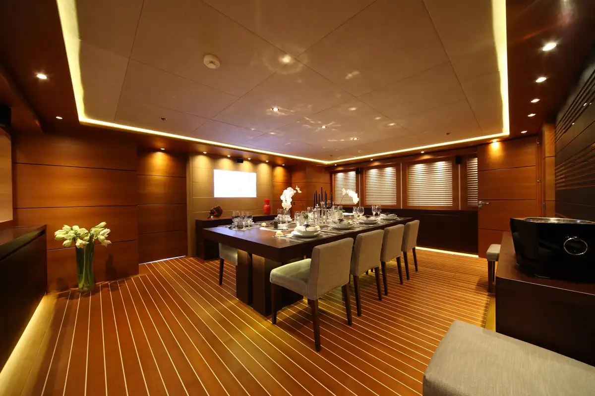 ZALIV III offers plenty of exterior space on three decks; the main deck features a large shaded aft deck with comfortable seating on three cushioned settees with coffee tables, the upper deck offers many options for sunning and relaxing on the various comfortable seating choices and sunpads, the deck also includes a large pool and an alfresco dining option. While the second deck is reserved for the exclusivity of the master cabin and features a private seating area.