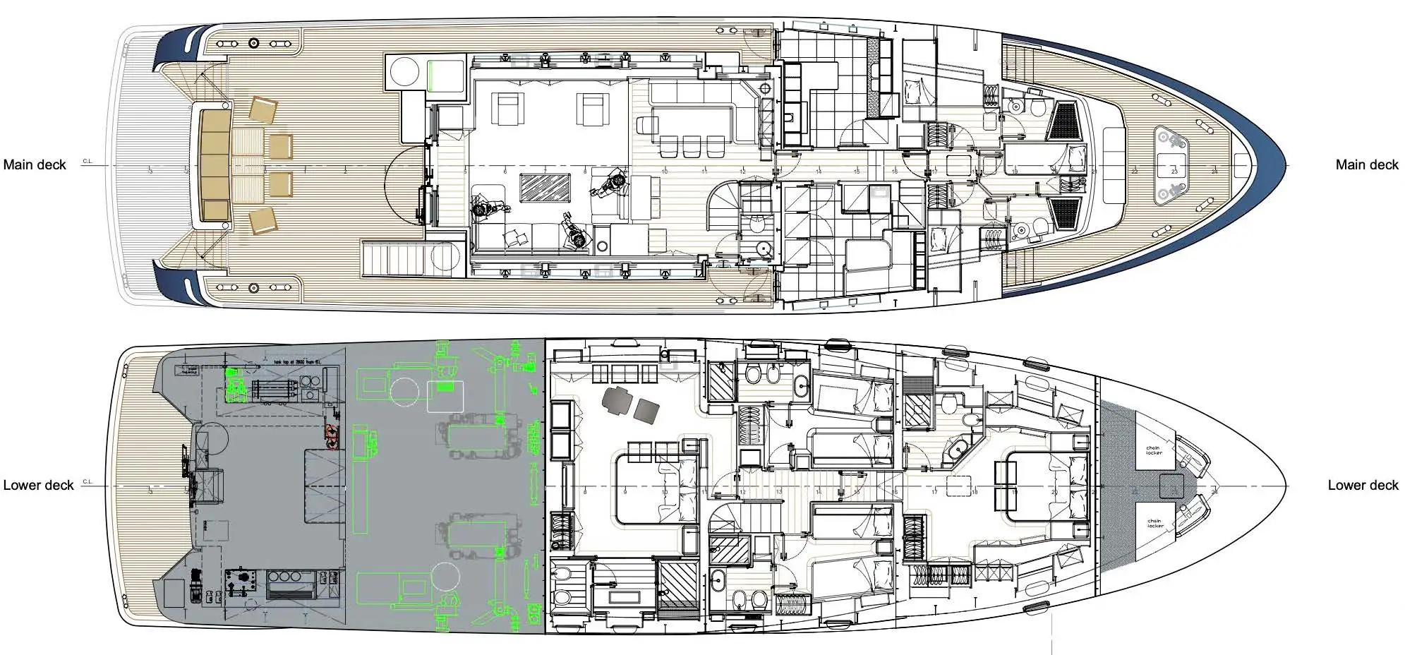 - Zero speed stabilisers to reduce any rolling motion while at anchor