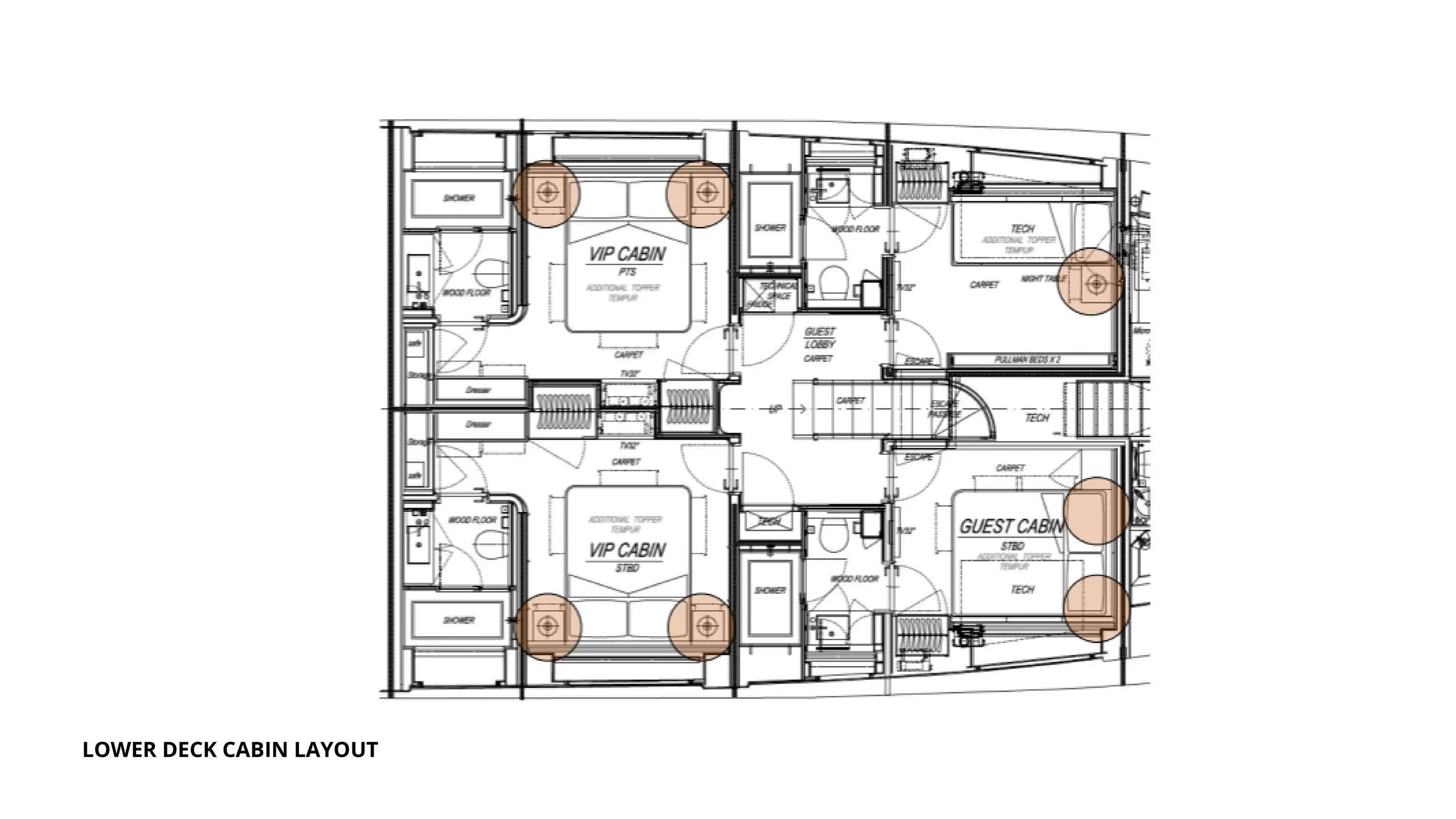 | Types de cabines | 5 (4 × double, 1 × twin) |