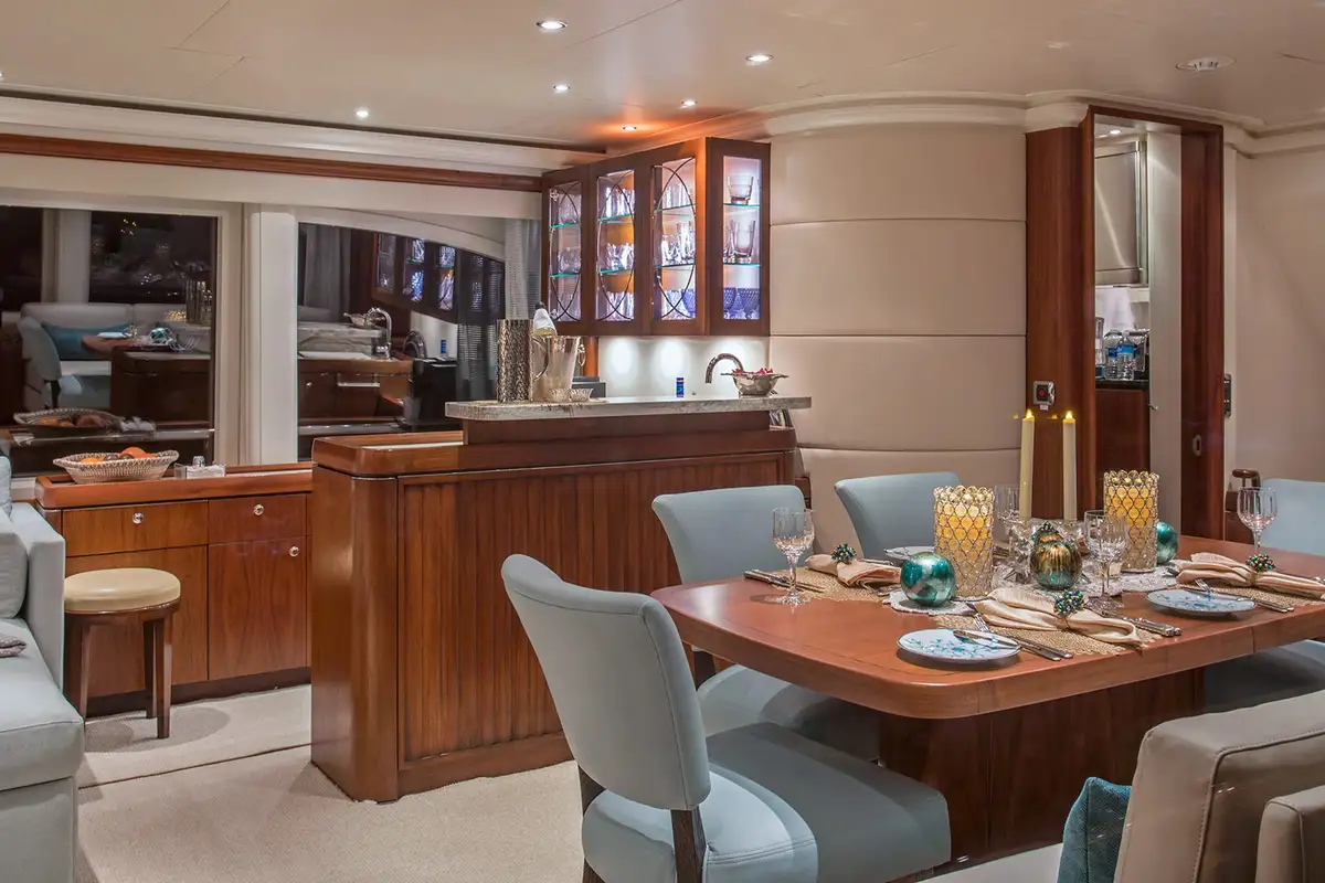Another restaurant with its own marina – just a quick call from your charter team on the VHF and you'll be ready to enjoy a unique yacht charter experience from this New England beach house-style dining room on the water.