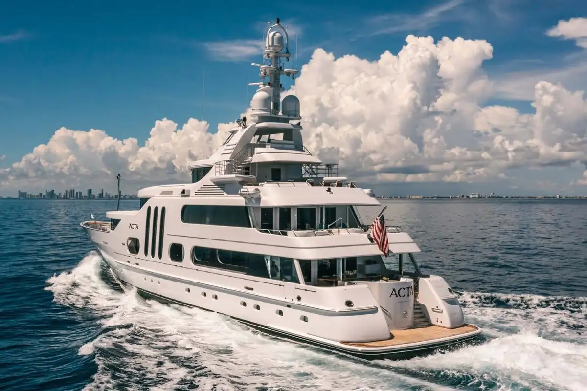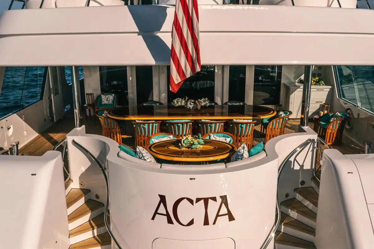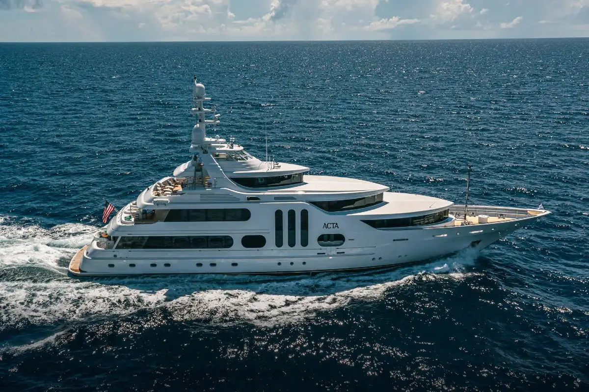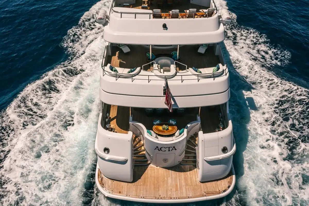 ACTA’s innovative layout offers unique areas beyond those found on yachts this size. Gorgeous cabins and guest spaces are tastefully adorned with fine materials like marble and granite, myrtle burr, eucalyptus, black walnut and sycamore all complimented by engraved glass panels. ACTA exudes classic lavishness throughout, and her compliment of highly-attentive crew is at your beck and call throughout your charter.