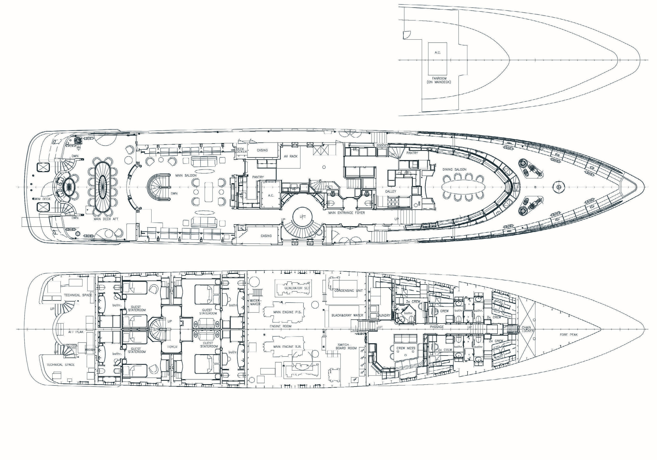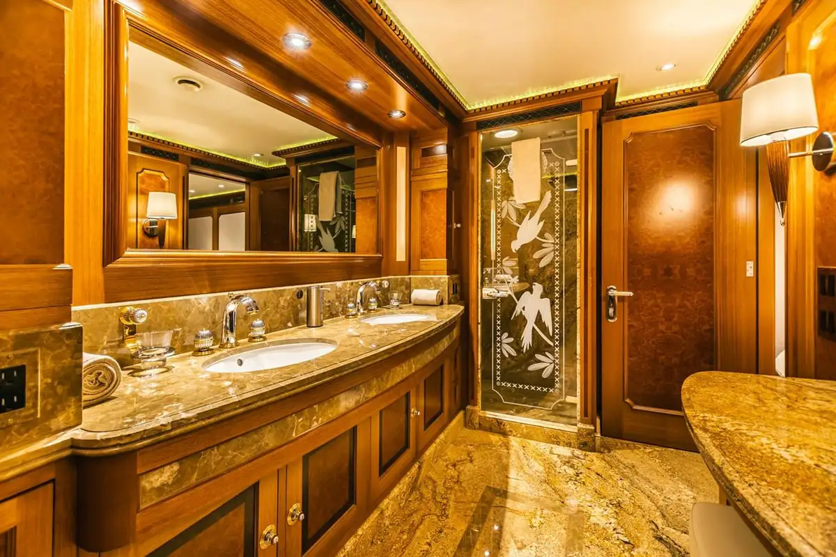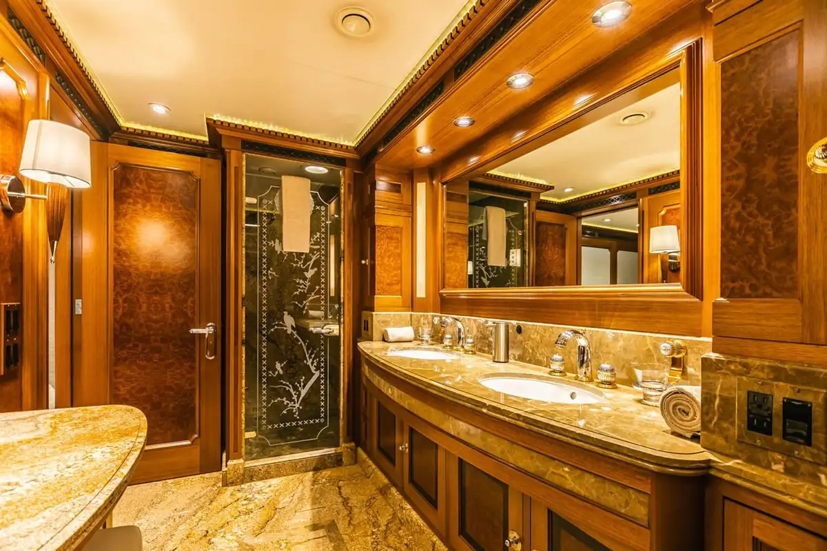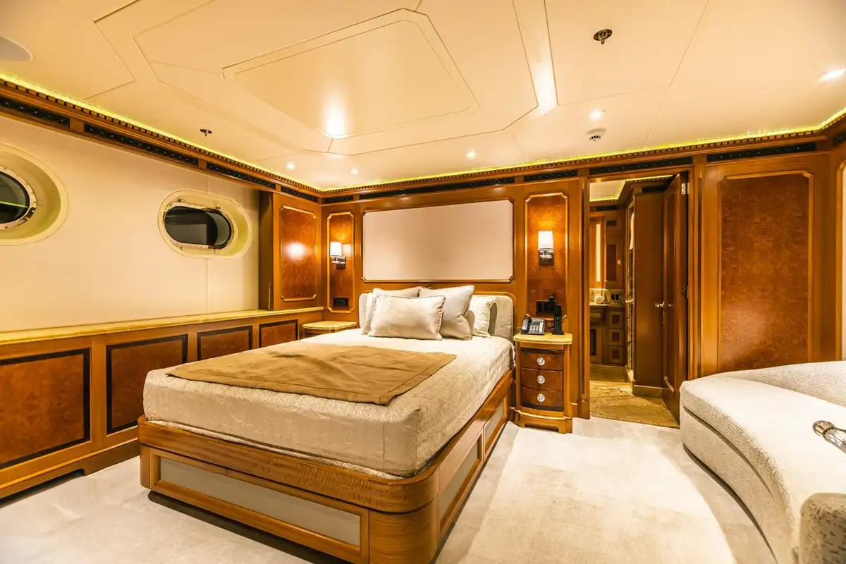 ACTA’s innovative layout offers unique areas beyond those found on yachts this size. Gorgeous cabins and guest spaces are tastefully adorned with fine materials like marble and granite, myrtle burr, eucalyptus, black walnut and sycamore all complimented by engraved glass panels. ACTA exudes classic lavishness throughout, and her compliment of highly-attentive crew is at your beck and call throughout your charter.