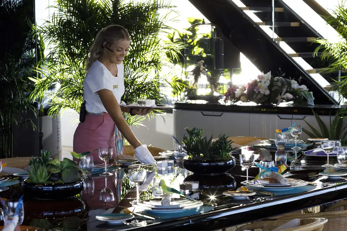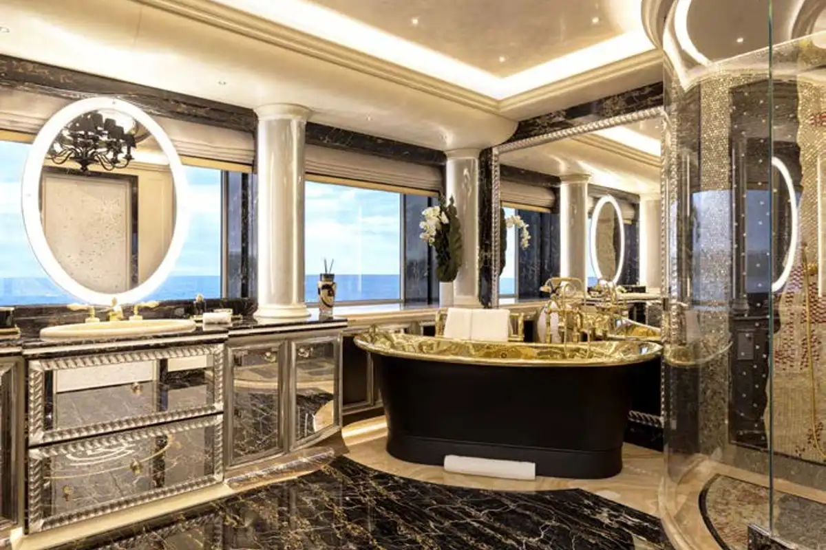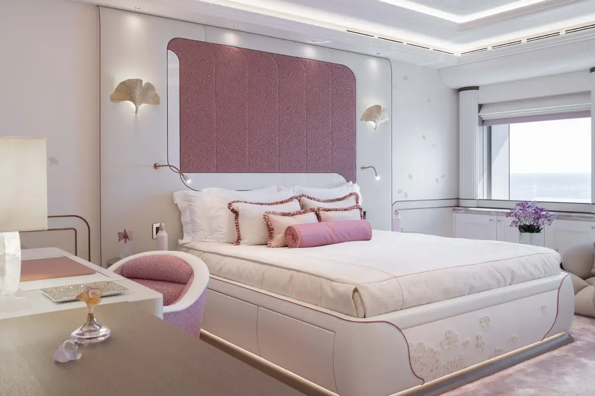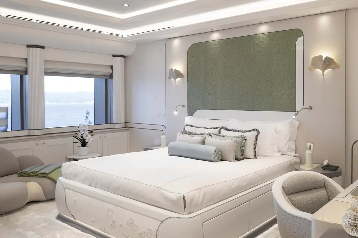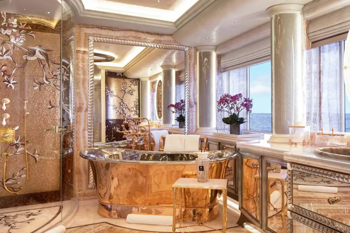 The attention to detail on board is of the highest level, from the wallpaper that was hand-crafted by artists or the choice of the finest natural materials, few yachts can compare to the onboard opulence of AHPO. Each suite has a unique theme and colour pallet to suit all your guests' needs. It is, however, the owner’s deck that will leave you awestruck. Few owner’s suites are of the size or exhibit the excellence of craftsmanship, fabrics or materials as AHPO’s. From the suite’s lobby area there are entrances to the his and hers bathrooms and dressing rooms. The central bed is partitioned for privacy and there are two private balconies one on each side depending on which view you’d prefer that day.