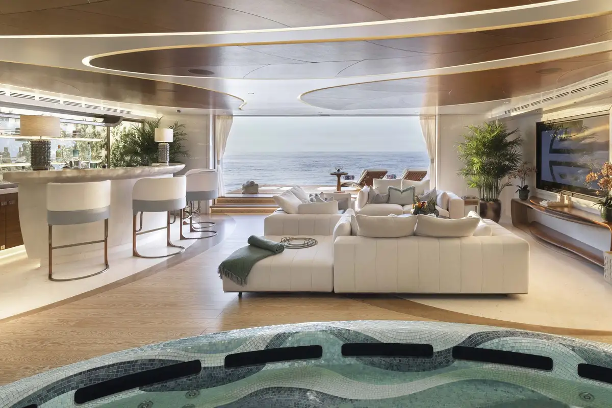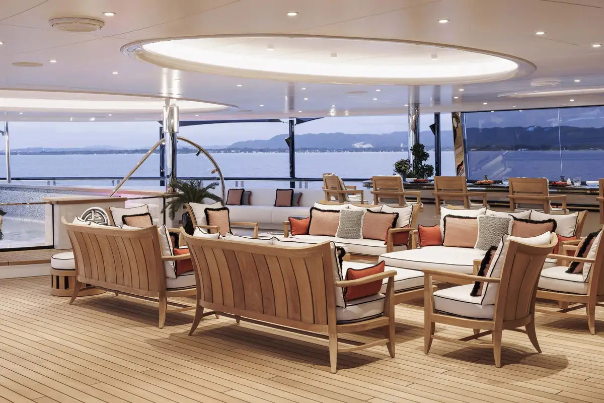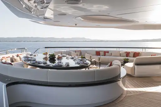 There are many places to relax on board AHPO and just take in your surroundings. Whether it’s around the 8m (26.2ft) swimming pool on the sun deck or in one of the many C-shaped seating nooks, sun lounger spaces or al fresco dining areas, you and your guests are spoilt for choice.