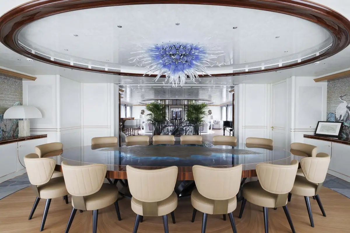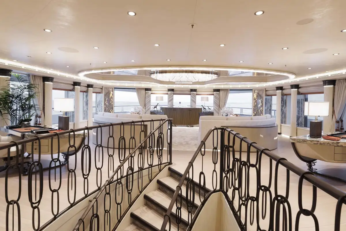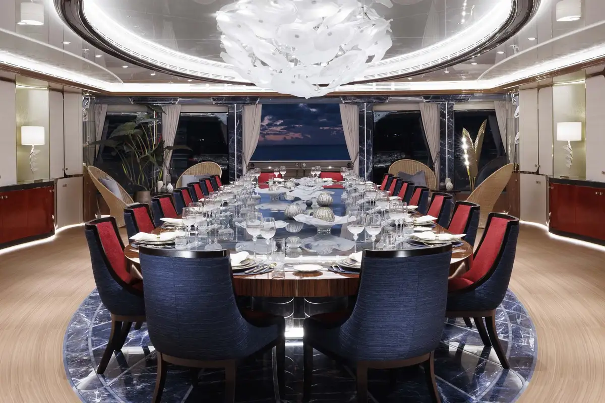 The lounges and dining areas on board are simply unique. She has four separate lounge areas; one each on the lower, main, owner’s and sky lounge decks, all are beautiful, comfortable and relaxing.